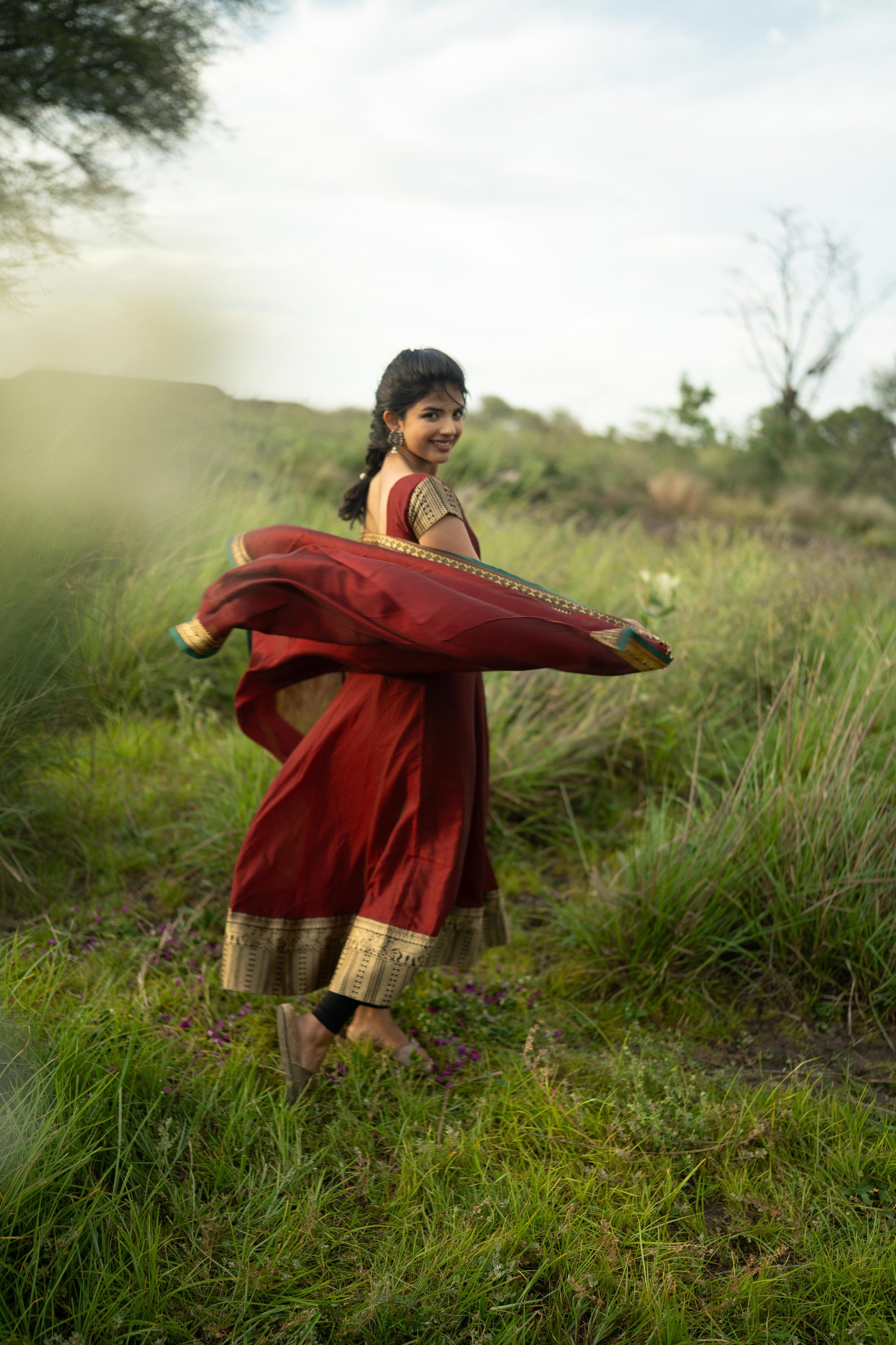 Blue Alia Cut Cotton Frock Block printed ankle length gown with full sleeves