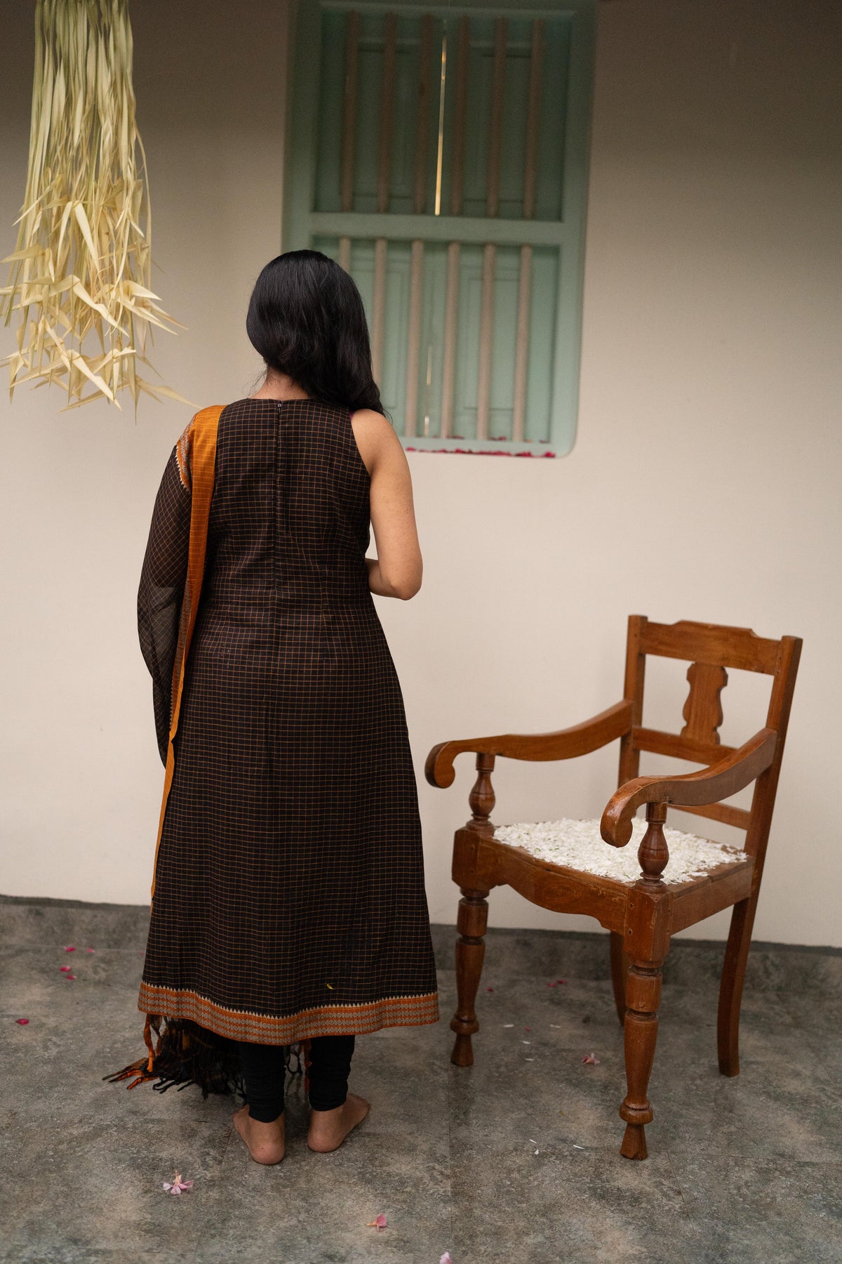 Black Kattam Kanchi Cotton Top & Dupatta combines traditional South Indian weaving with contemporary comfort. Crafted from premium Kanchi cotton, this ensemble features intricate Kattam detailing that showcases authentic textile artistry. The breathable fabric ensures all-day wearability in warm climates, while the coordinated dupatta adds versatility for layering or draping. Perfect for cultural celebrations, festive occasions, or everyday elegance, this piece bridges heritage craftsmanship with modern styling sensibilities.