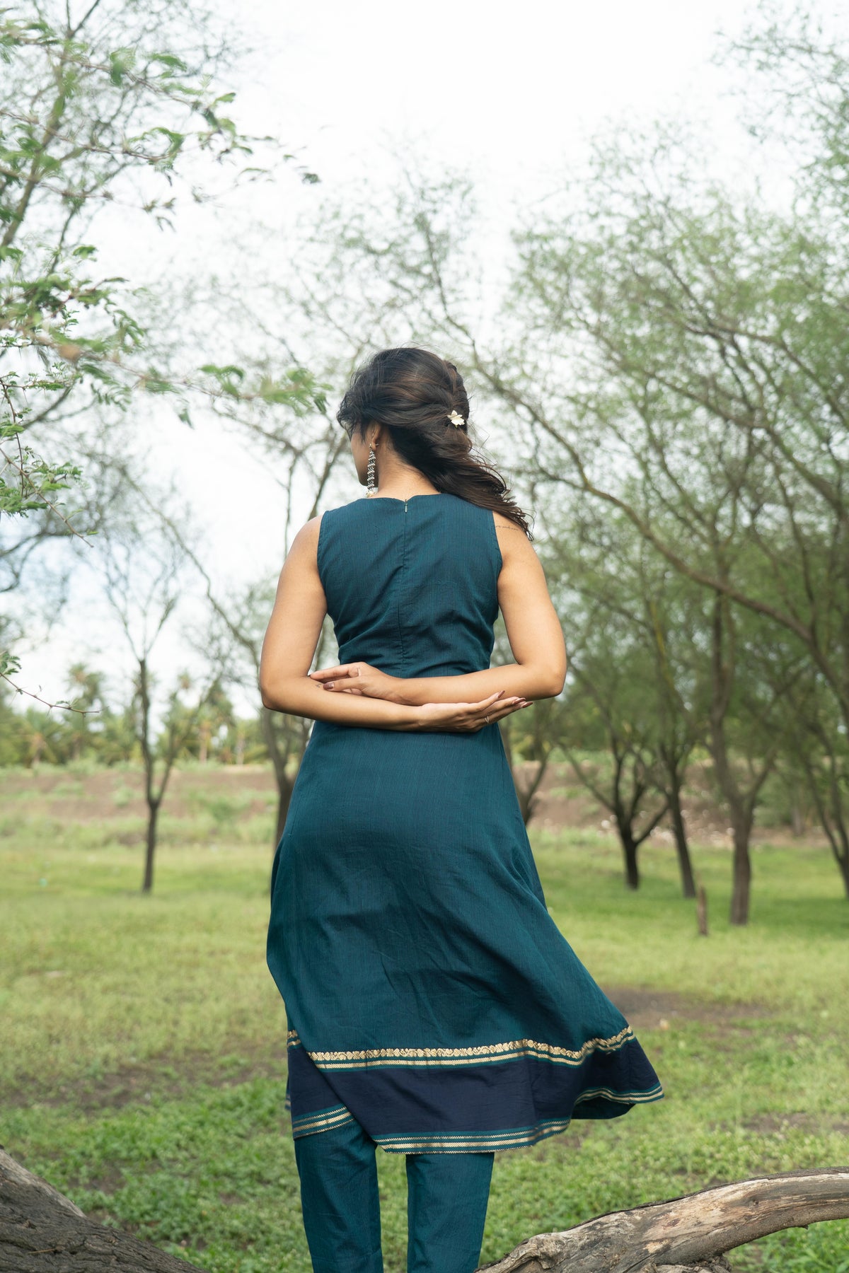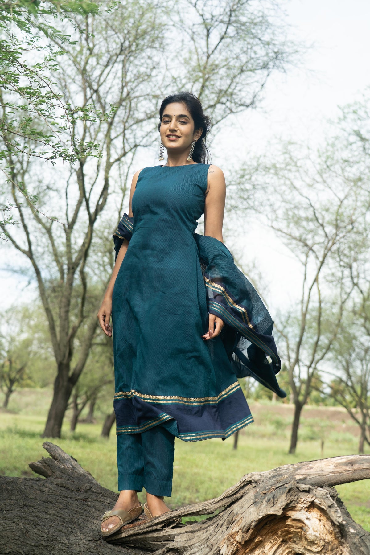 Blue Kadhambari Cotton Top & Dupatta Set - XS / Sleeveless
