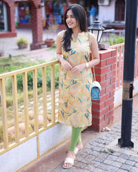 Enhance your wardrobe with this stylish Multicolor chanderi Sleeveless top. Made from high-quality chanderi fabric, this top is lightweight and comfortable to wear. Its vibrant color combination and sleeveless design make it perfect for any occasion. Add this trendy top to your collection for a fashionable and versatile look.