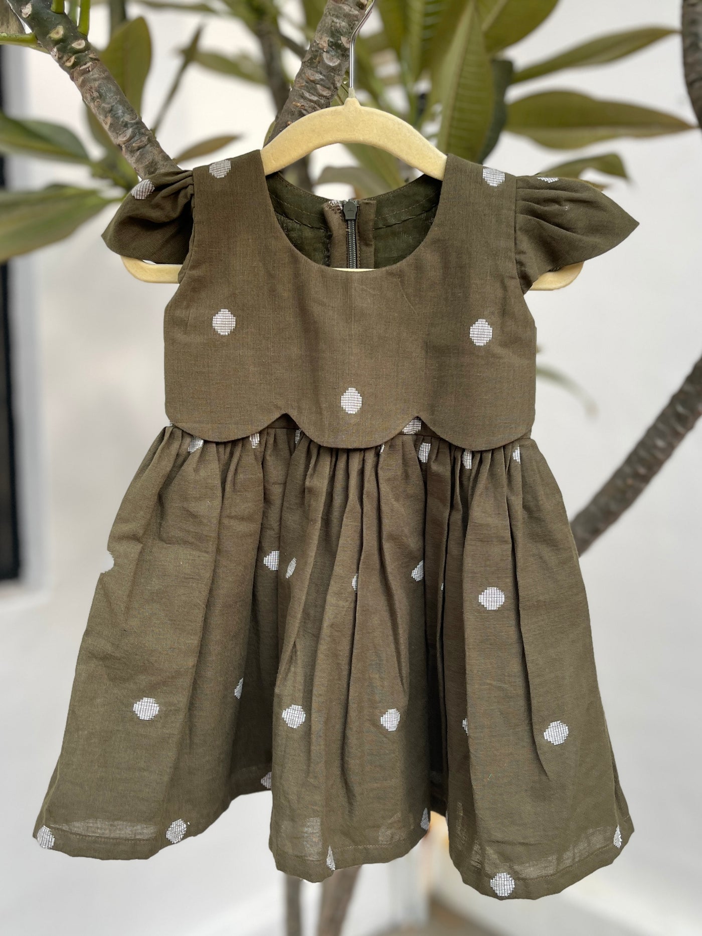 Olive Polka Dress - 0-6 months