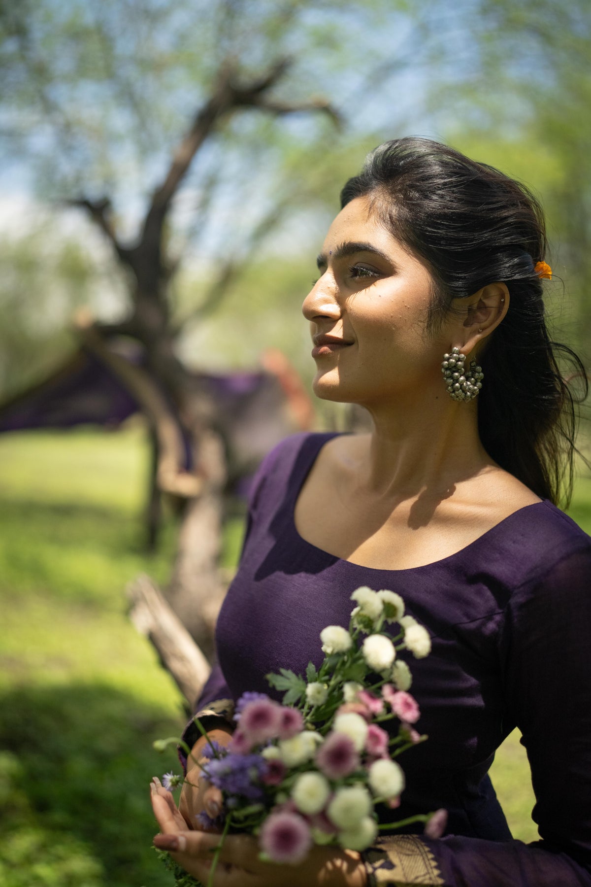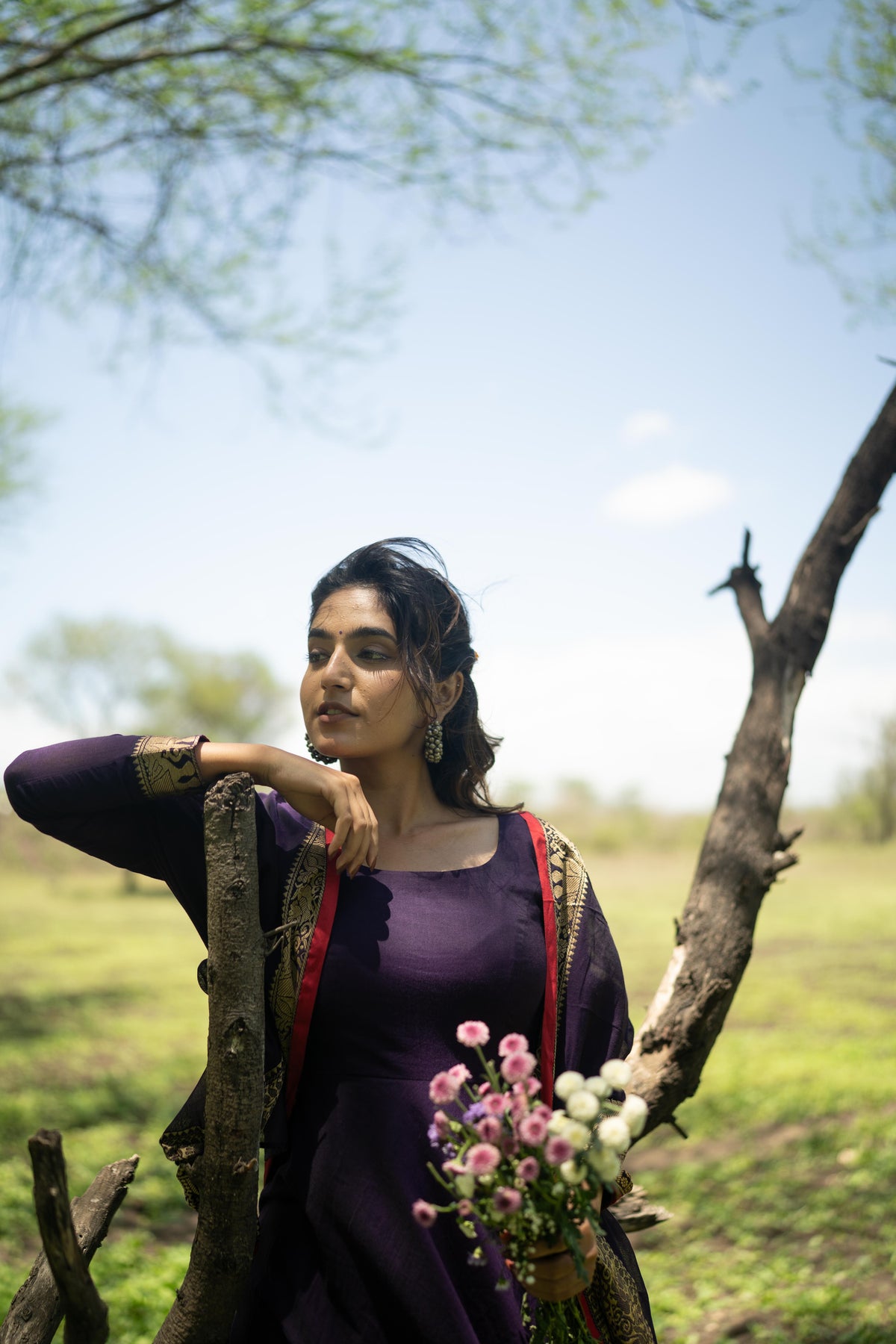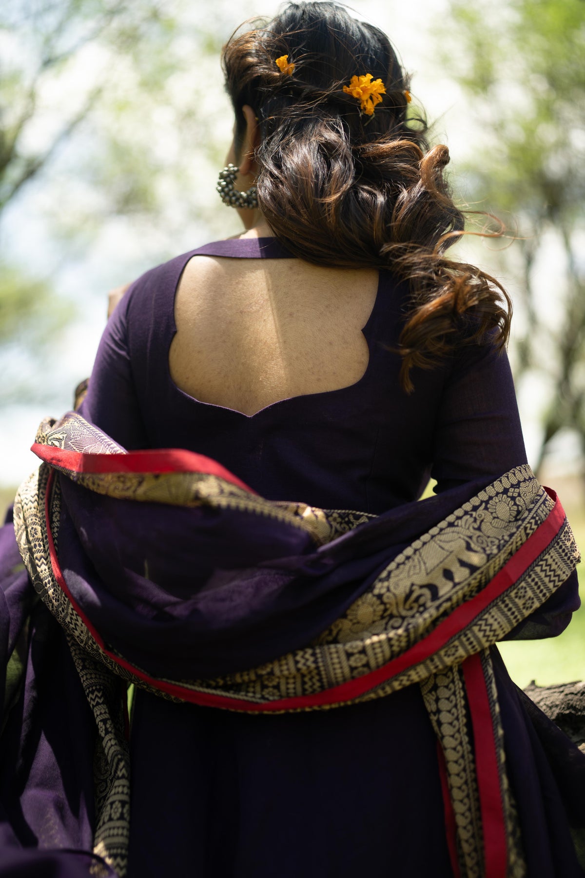 Jamun Purple Malar Anarkali Top & Dupatta - XS