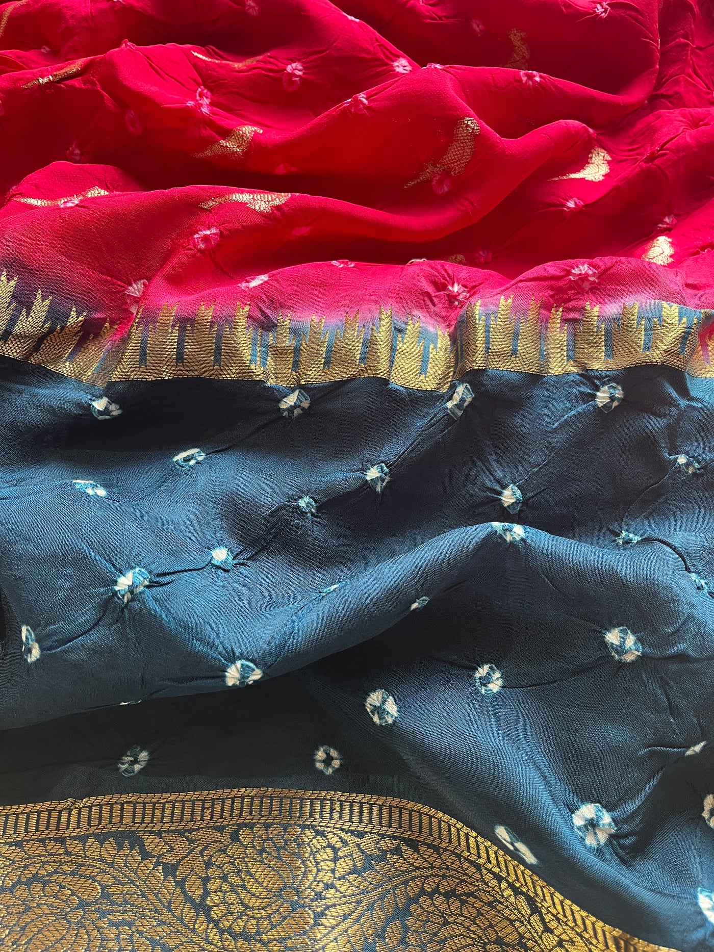 This Pink with Blue Bandhini Art Silk Saree showcases traditional craftsmanship combined with luxurious fabric. The art silk material offers a smooth, elegant drape that enhances comfort while maintaining a rich appearance. Its intricate Bandhini patterns in vibrant blue against a pink background add depth and cultural charm, making it an ideal choice for festive occasions and celebrations. This saree combines style and heritage, allowing you to make a sophisticated statement effortlessly.