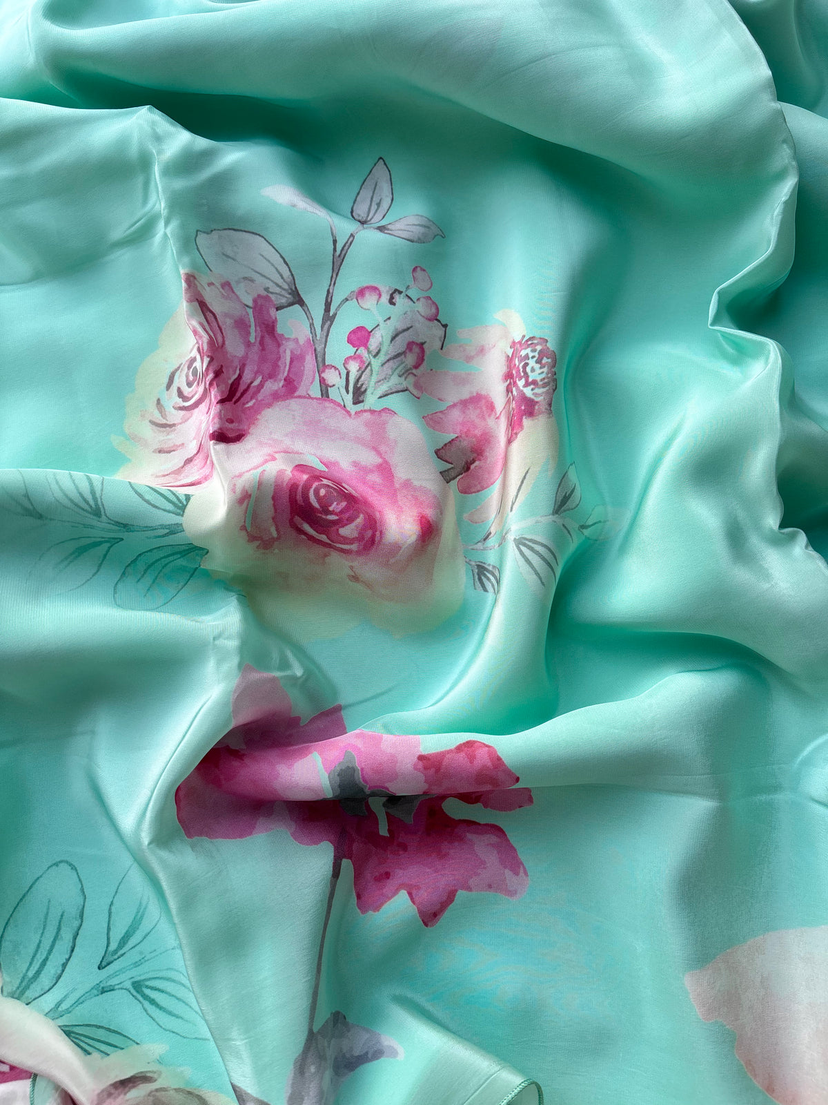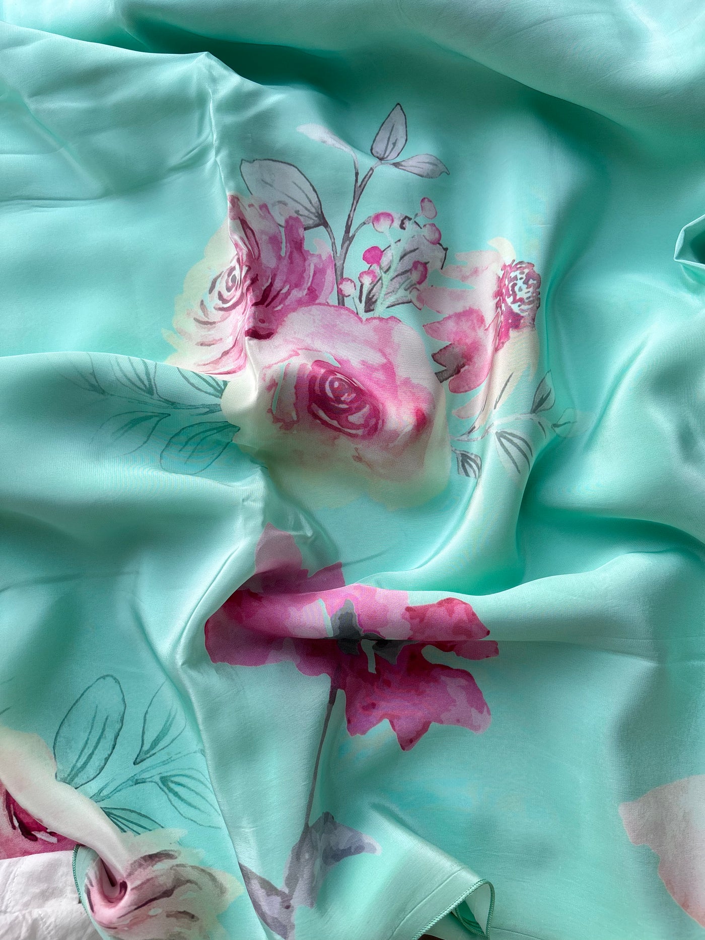 This green floral crape saree is a perfect blend of elegant design and comfortable fabric. Made from high-quality crape material, it drapes beautifully on all body types. The beautiful floral print adds a touch of femininity to any occasion. Upgrade your wardrobe with this versatile and stunning saree.
