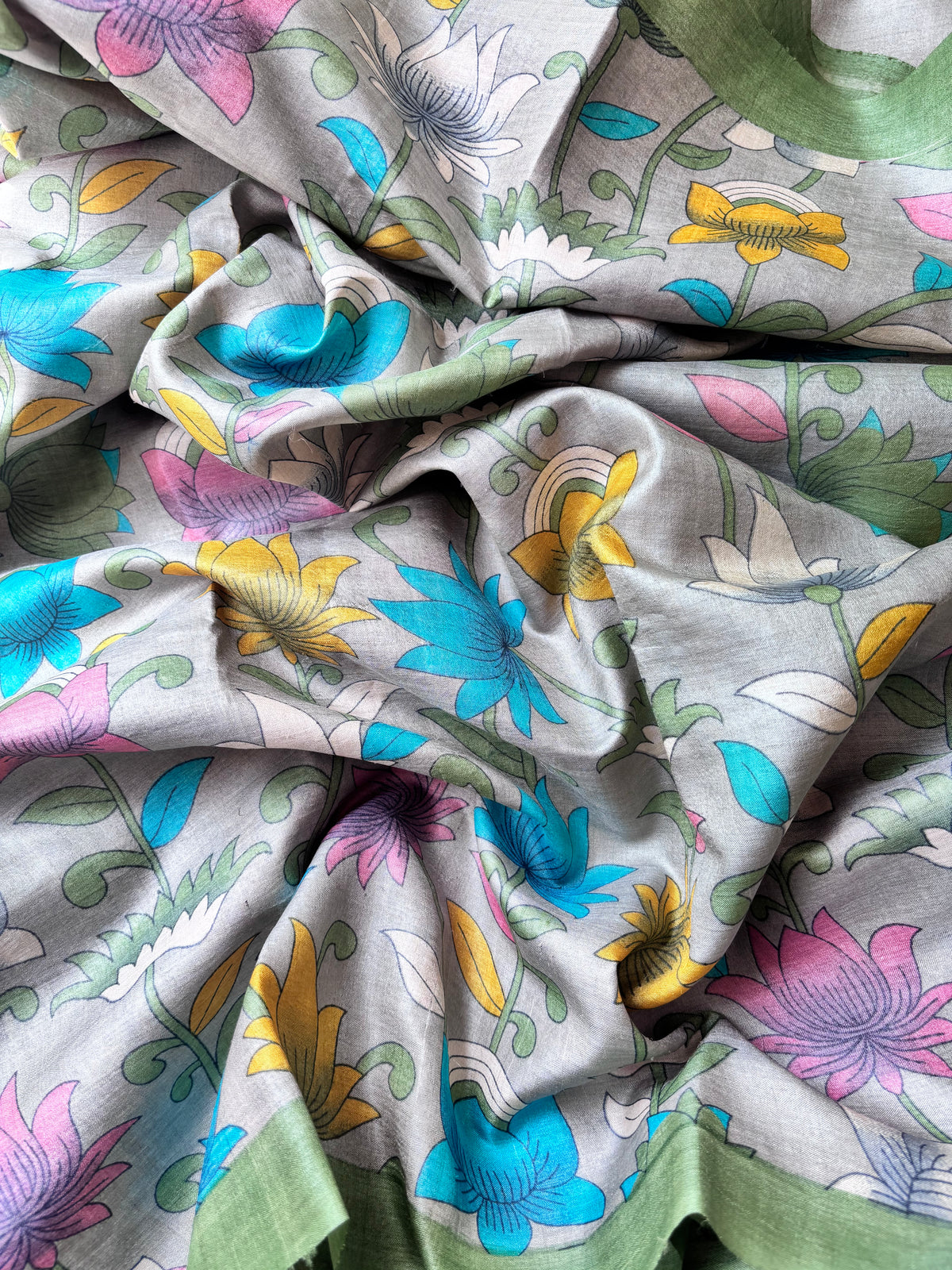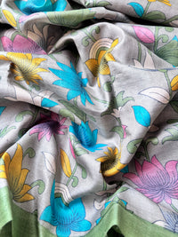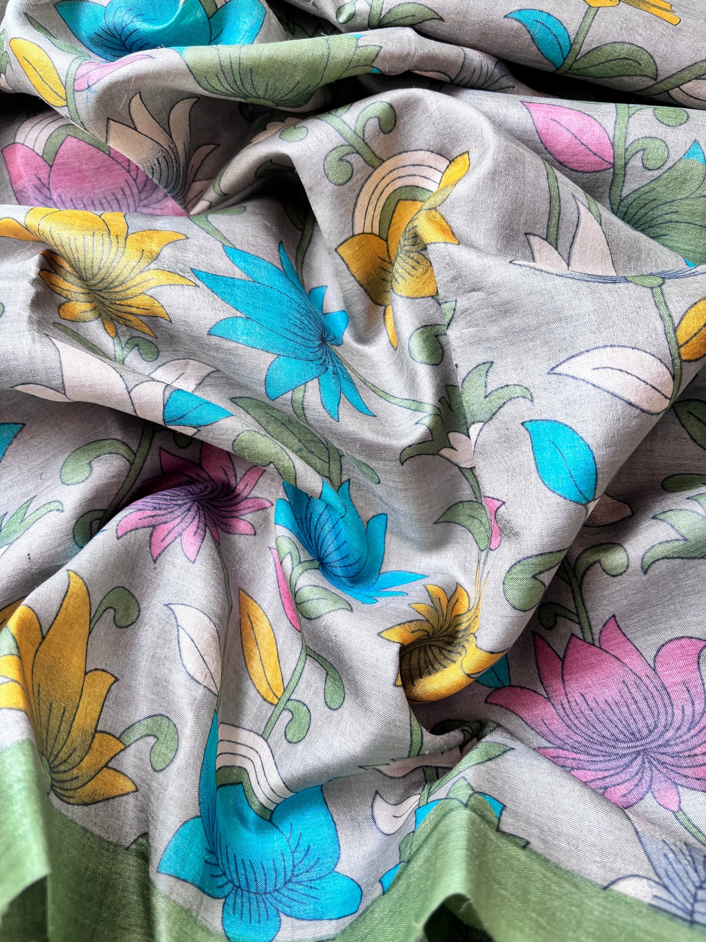 The Gray Tussar Saree features the distinctive texture and natural luster of tussar silk in a sophisticated gray tone. Its breathable fabric ensures comfort, while the elegant drape highlights expert craftsmanship. Suitable for both formal and casual occasions, this saree offers a versatile and timeless addition to any wardrobe, blending traditional artistry with contemporary style.