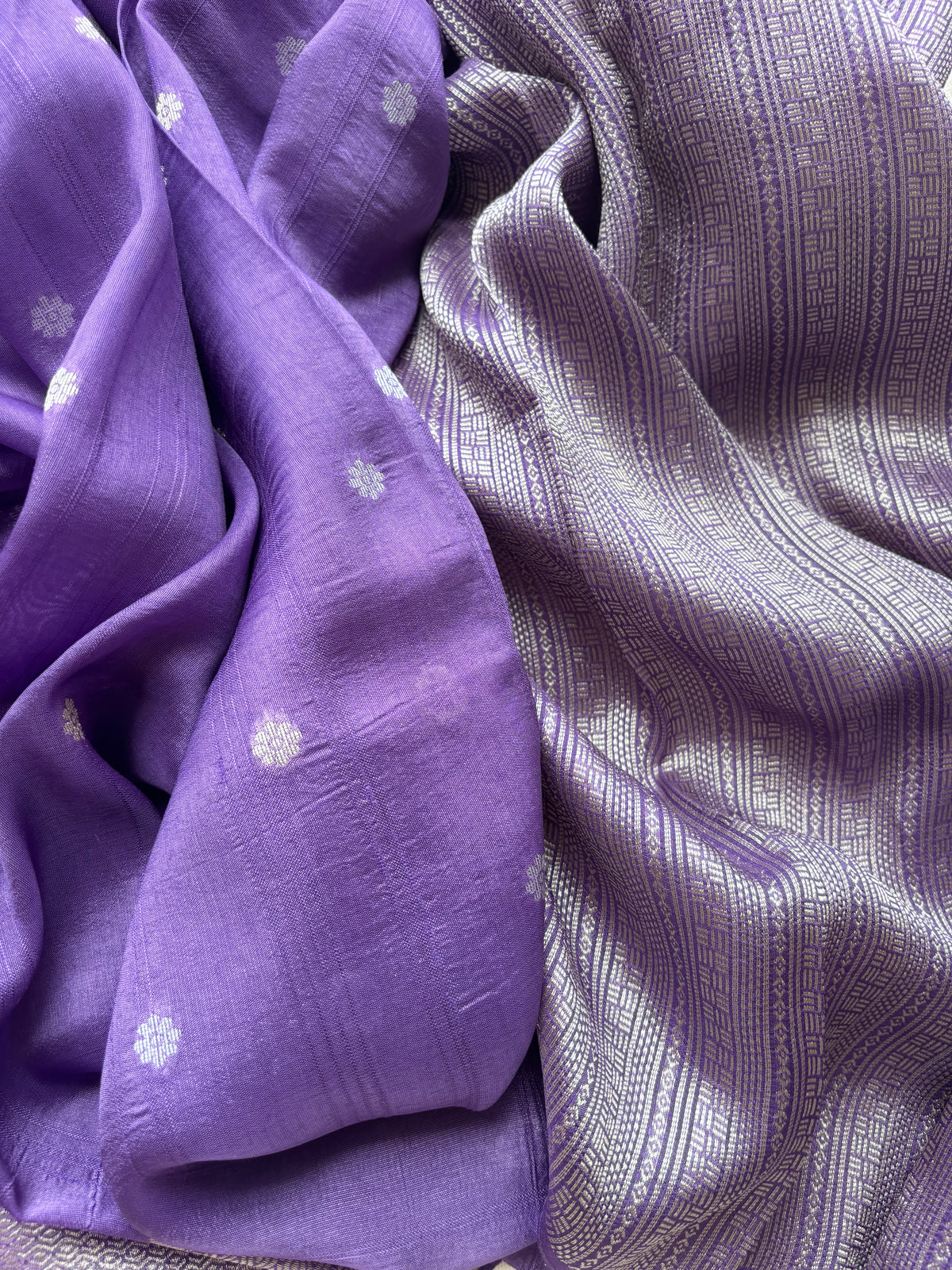 Elevate your traditional wardrobe with this Lavender Semi Raw Silk Banarasi Saree, expertly crafted to showcase the timeless elegance of Banarasi weaving. The semi raw silk fabric offers a subtle texture and rich sheen, while the delicate lavender hue adds a refined softness. Perfect for festive occasions and formal events, this saree combines heritage craftsmanship with contemporary appeal, ensuring you make a graceful statement wherever you wear it.