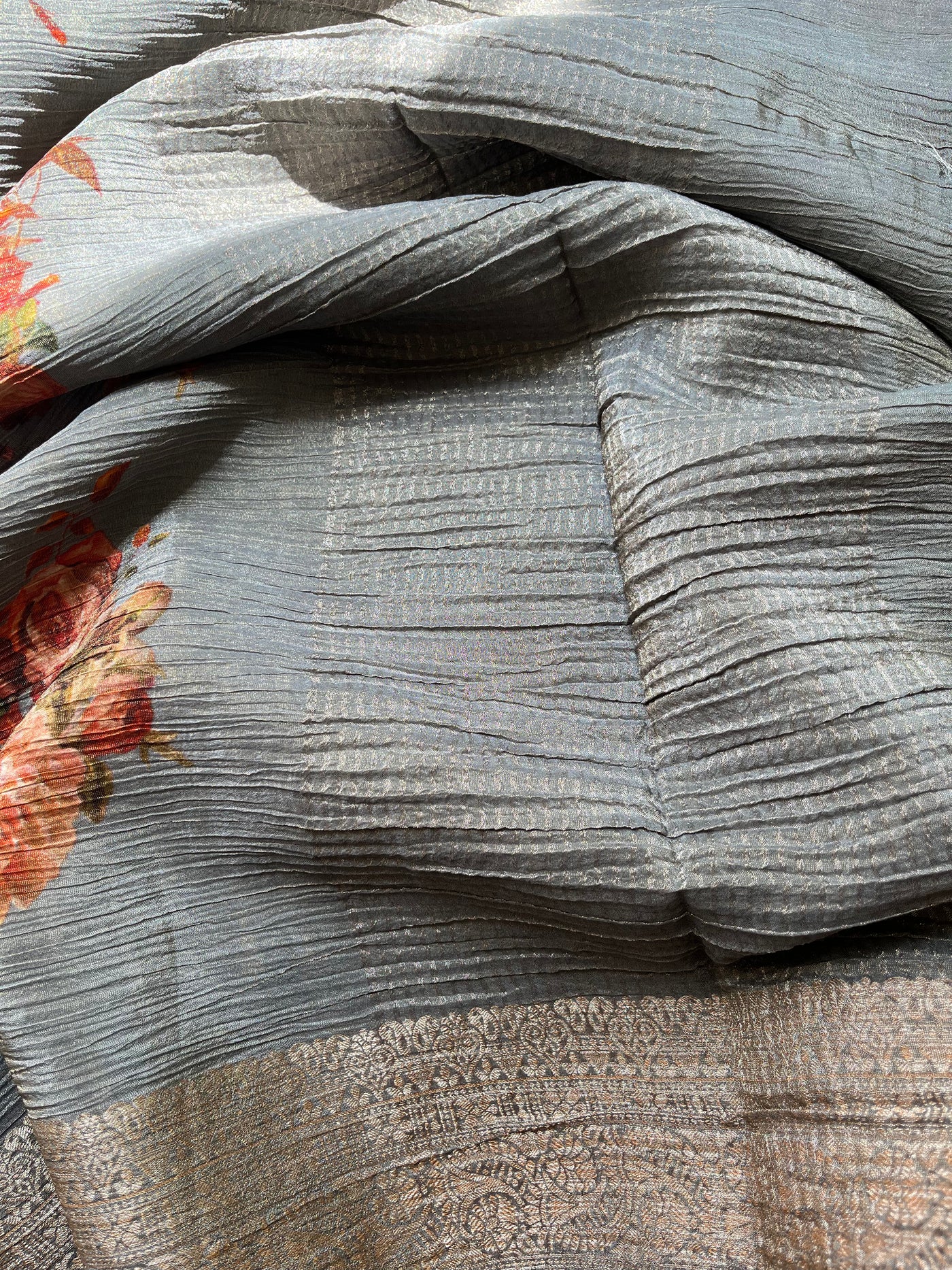 Blue, Green, Grey & Brown Tissue Georgette Sarees