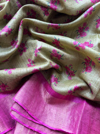 This Pastel Green Tussar Saree with a Pink Border blends delicate hues with traditional craftsmanship. Woven from natural tussar silk, it offers a soft texture and subtle sheen, ensuring comfort and elegance. The gentle pastel green complemented by a vibrant pink border creates a balanced, sophisticated look perfect for festive occasions and formal events. Expertly crafted, this saree embodies timeless style with a fresh, contemporary appeal.