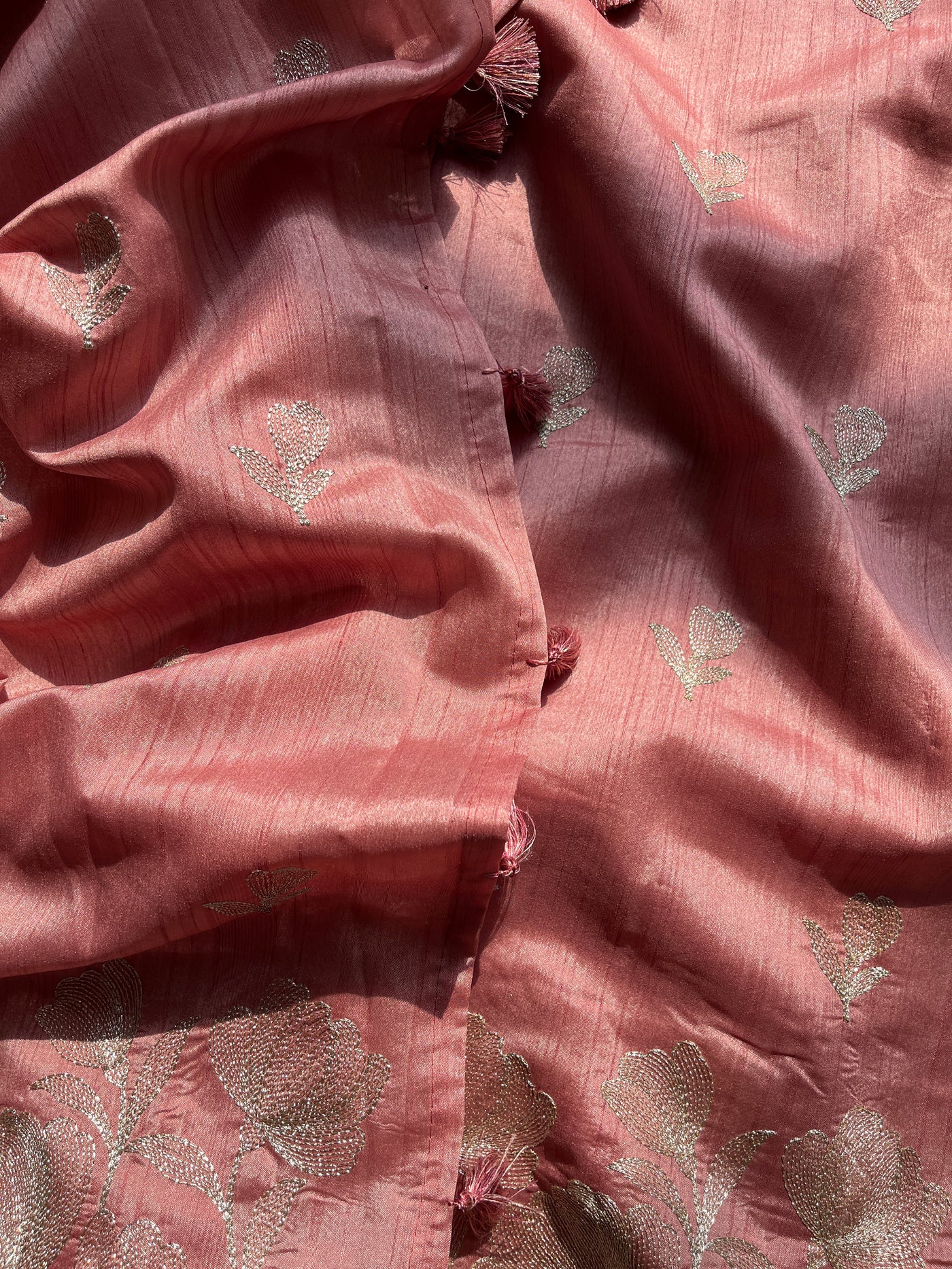 Elevate your ethnic wardrobe with this Peach Art Tussar Saree, expertly crafted from premium tussar silk known for its natural texture and rich luster. The delicate peach hue enhances its timeless appeal, while intricate art motifs add a refined artistic touch. Ideal for festive occasions and formal events, this saree offers both elegance and comfort, reflecting a perfect blend of traditional craftsmanship and contemporary style.