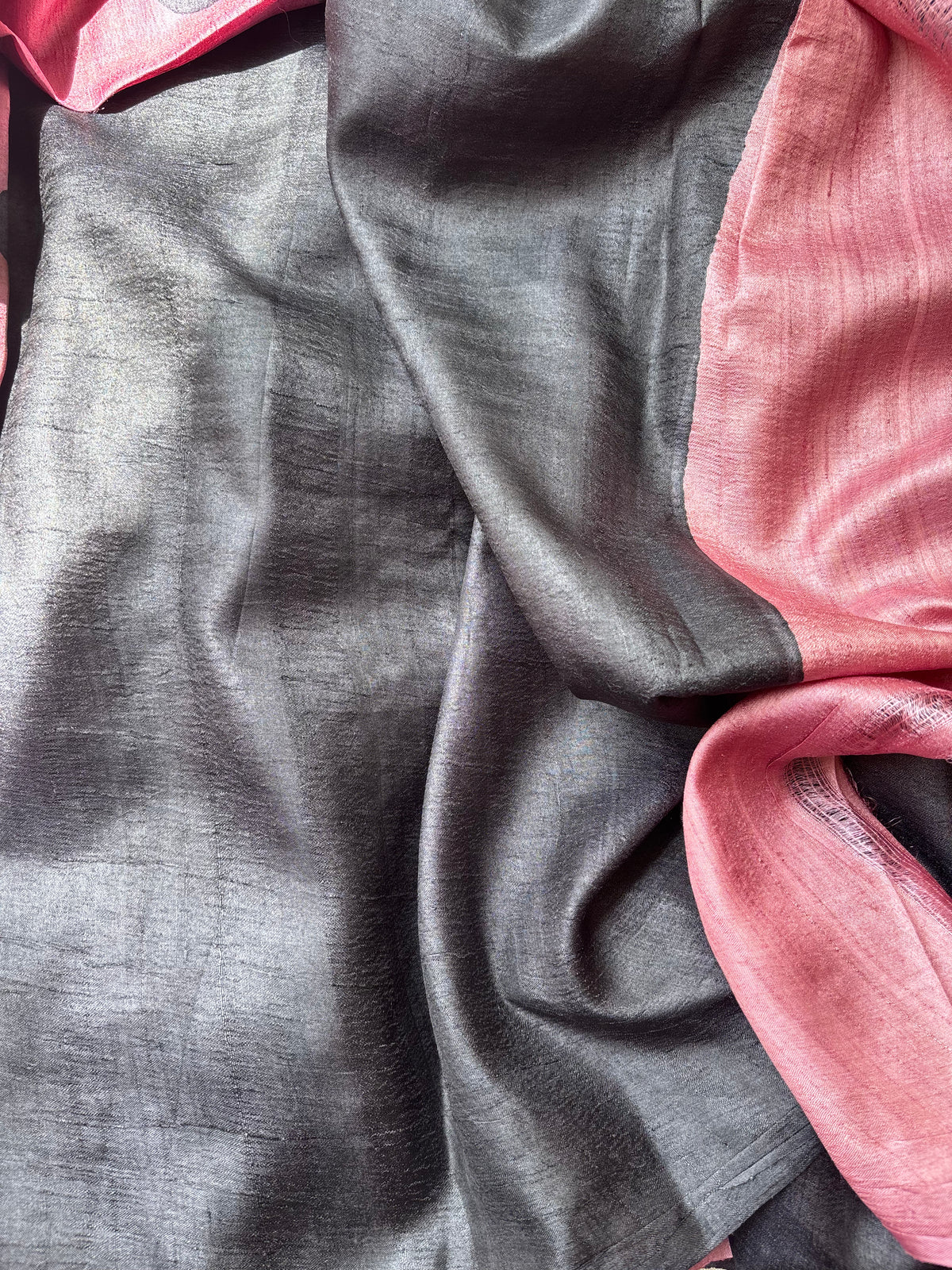 The Peach Tussar Saree embodies the rich texture and natural sheen of tussar silk, enhanced by a soft, warm peach hue. Its breathable fabric ensures comfort, while the graceful drape reflects meticulous craftsmanship. Perfect for festive occasions and elegant gatherings, this saree offers a refined blend of traditional artistry and contemporary sophistication.