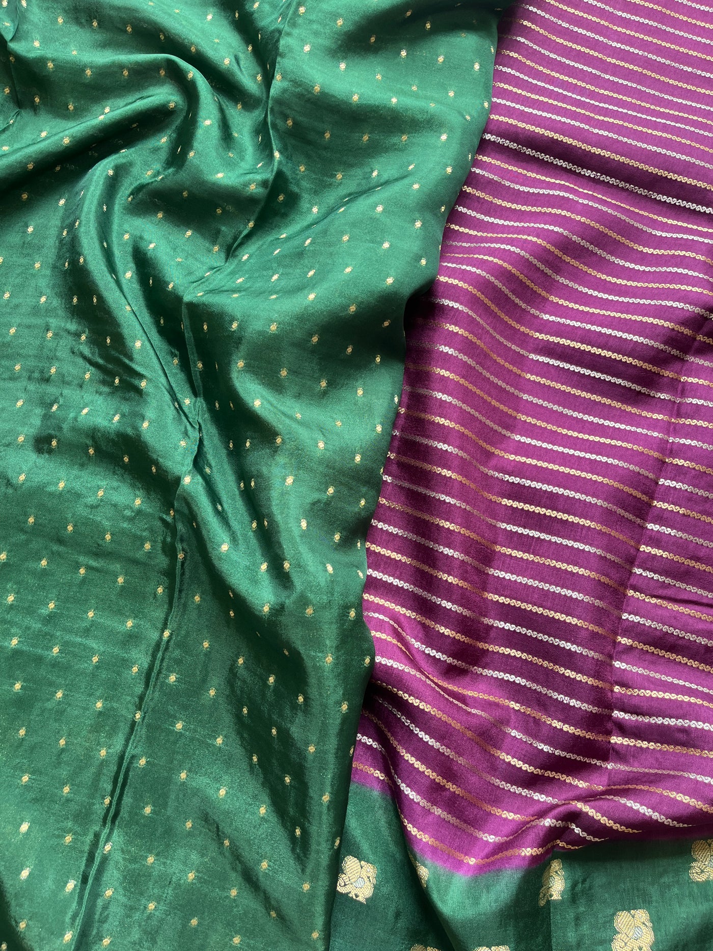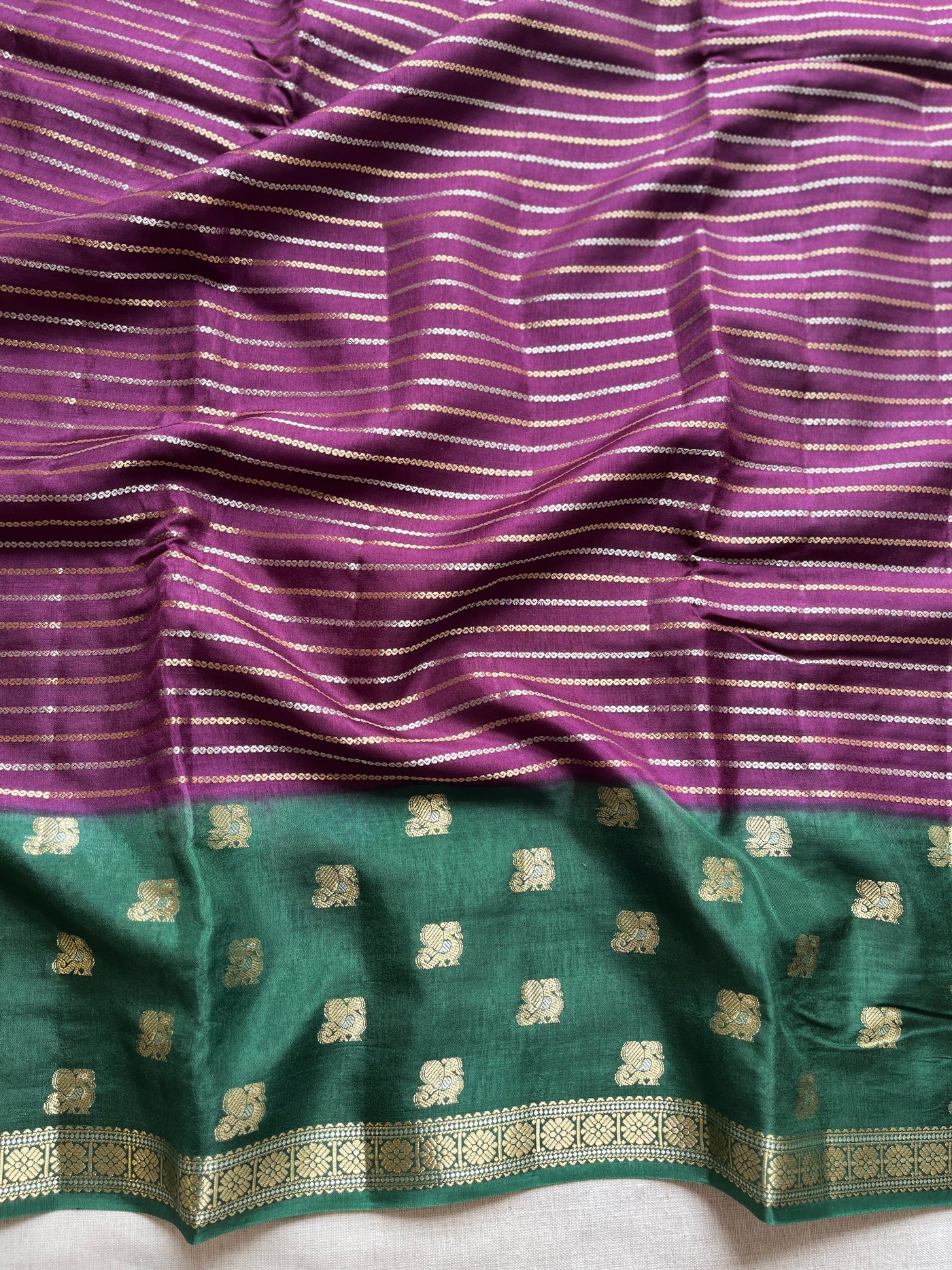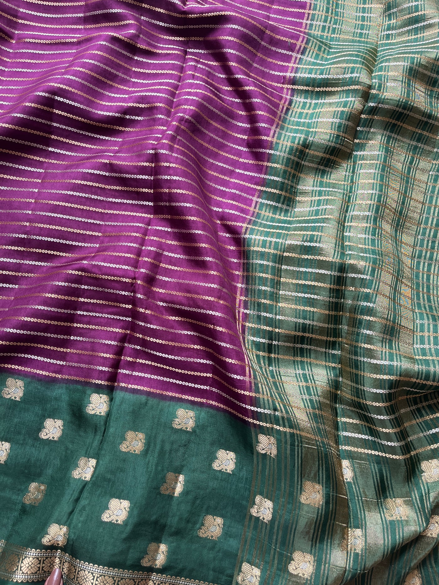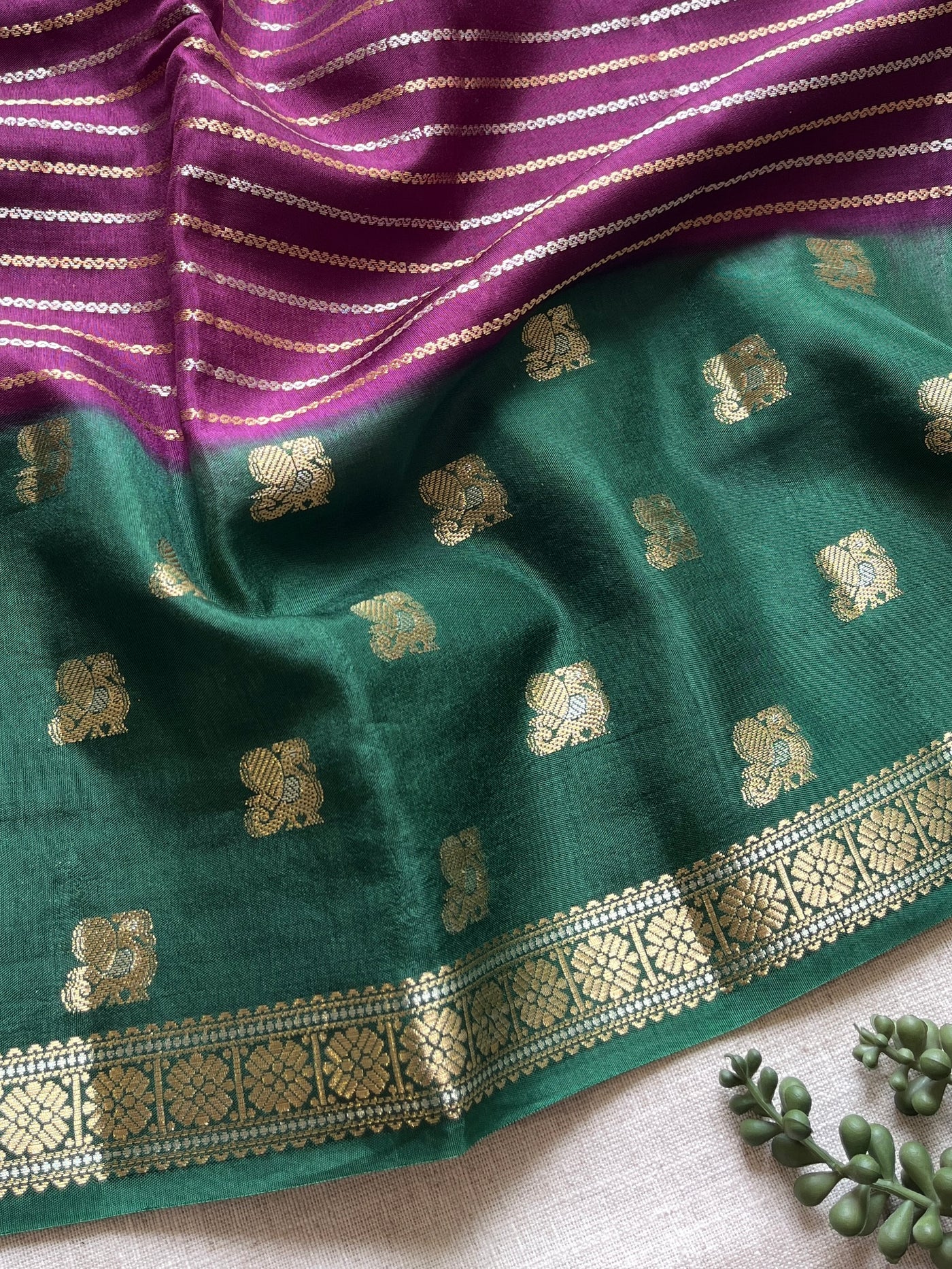 This Purple with Dark Green Viscose Silk Saree features a rich purple base complemented by deep dark green detailing, creating a striking and elegant color combination. Made from premium viscose silk, it offers a soft, smooth texture with a gentle sheen that enhances its luxurious appeal. The fabric’s lightweight drape ensures comfortable wear while accentuating your silhouette, making it an ideal choice for formal occasions and celebrations.