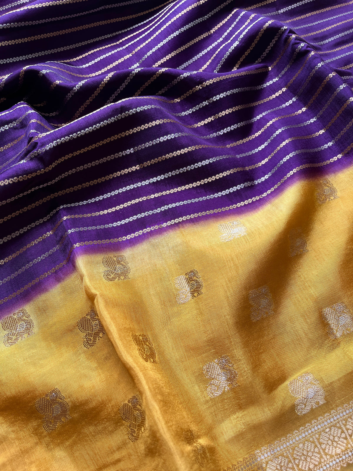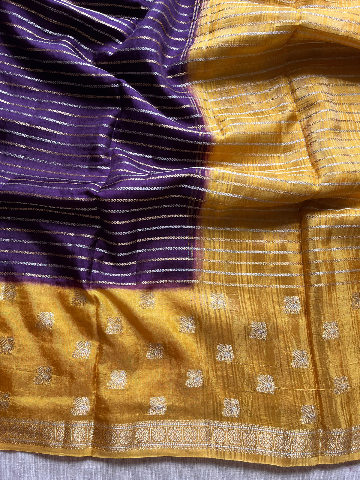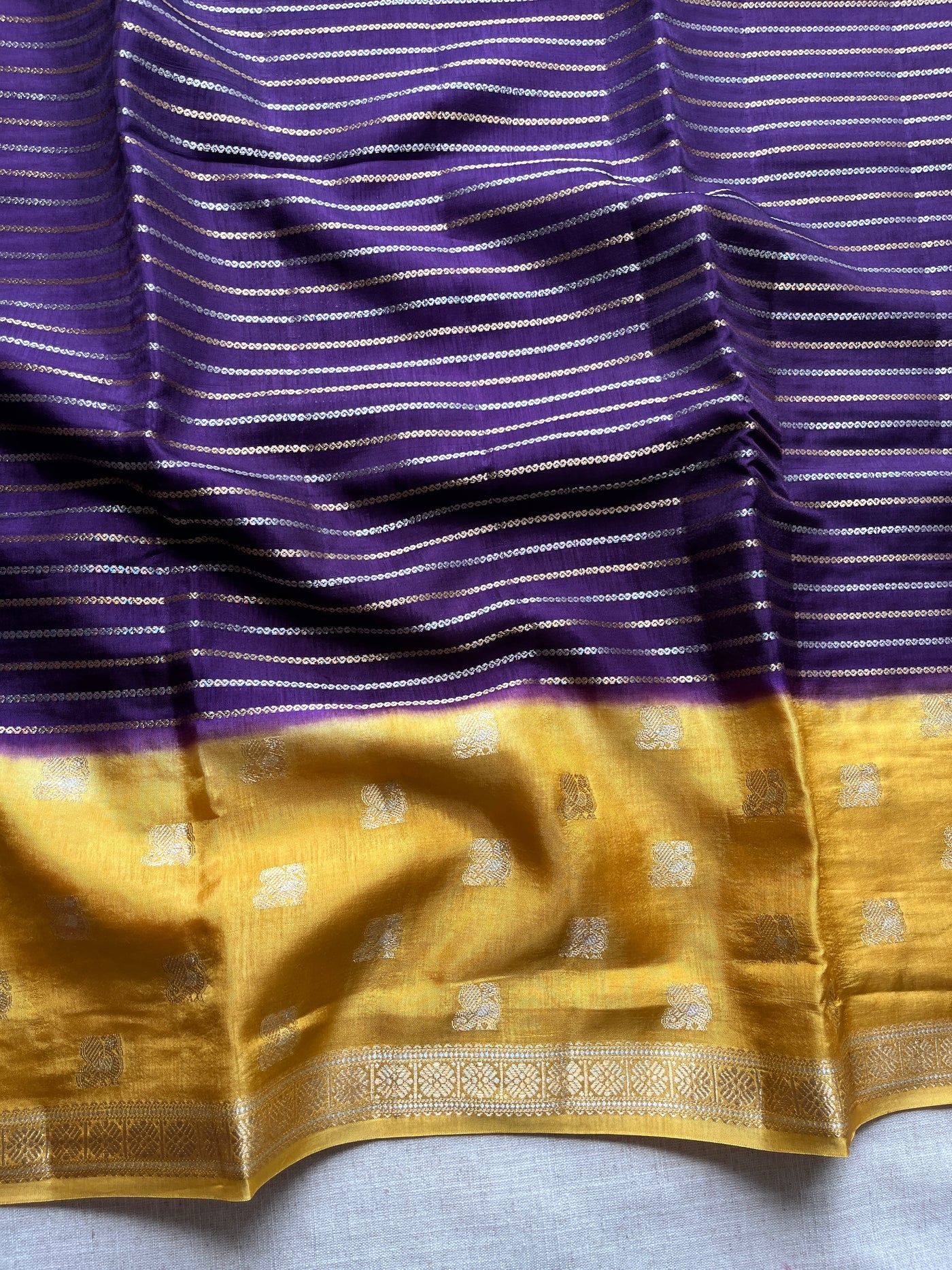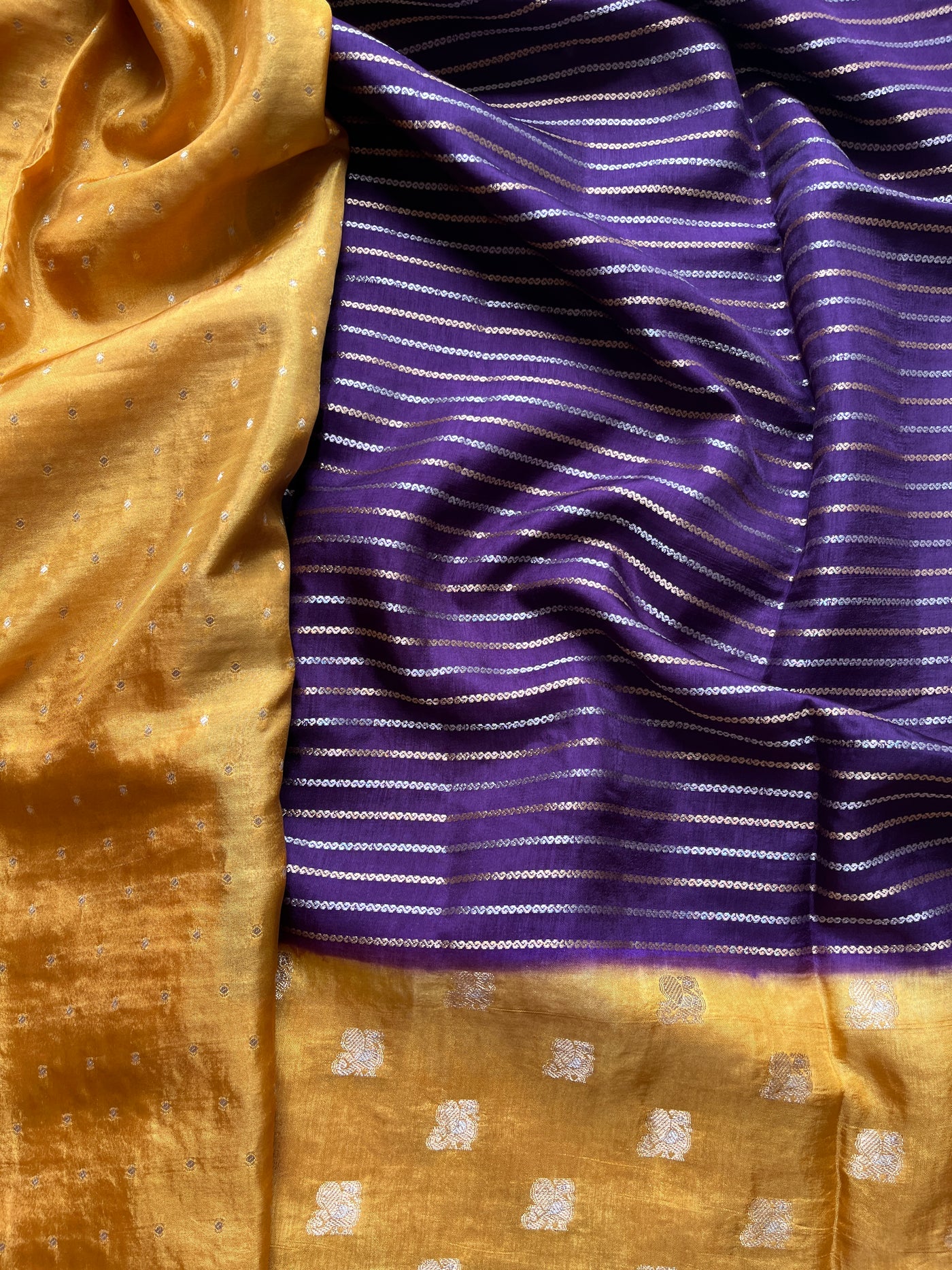 This Purple with Yellow Viscose Silk Saree showcases a vibrant blend of rich purple and bright yellow hues, creating a captivating contrast. Made from premium viscose silk, it offers a smooth texture and subtle sheen that enhance its refined elegance. The saree’s lightweight fabric drapes effortlessly, providing both comfort and grace, making it an excellent choice for festive events and special occasions.