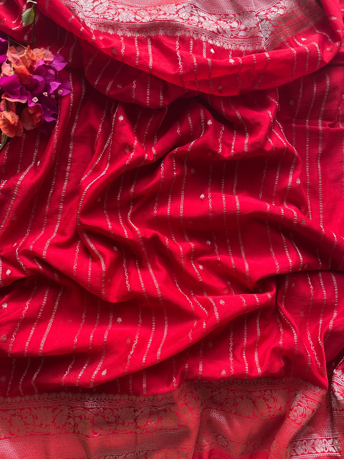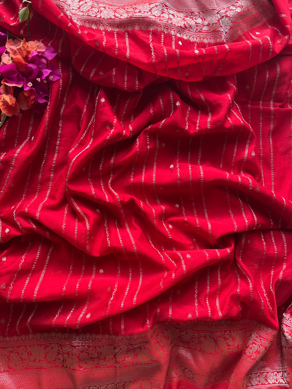 Elevate your wardrobe with this Red Chiffon Silk Saree, blending the lightweight elegance of chiffon with the rich texture of silk. Its vibrant red hue enhances grace and presence, making it ideal for formal occasions and festive celebrations. The delicate fabric ensures comfortable draping while highlighting intricate craftsmanship—a sophisticated choice for those who appreciate refined traditional attire.