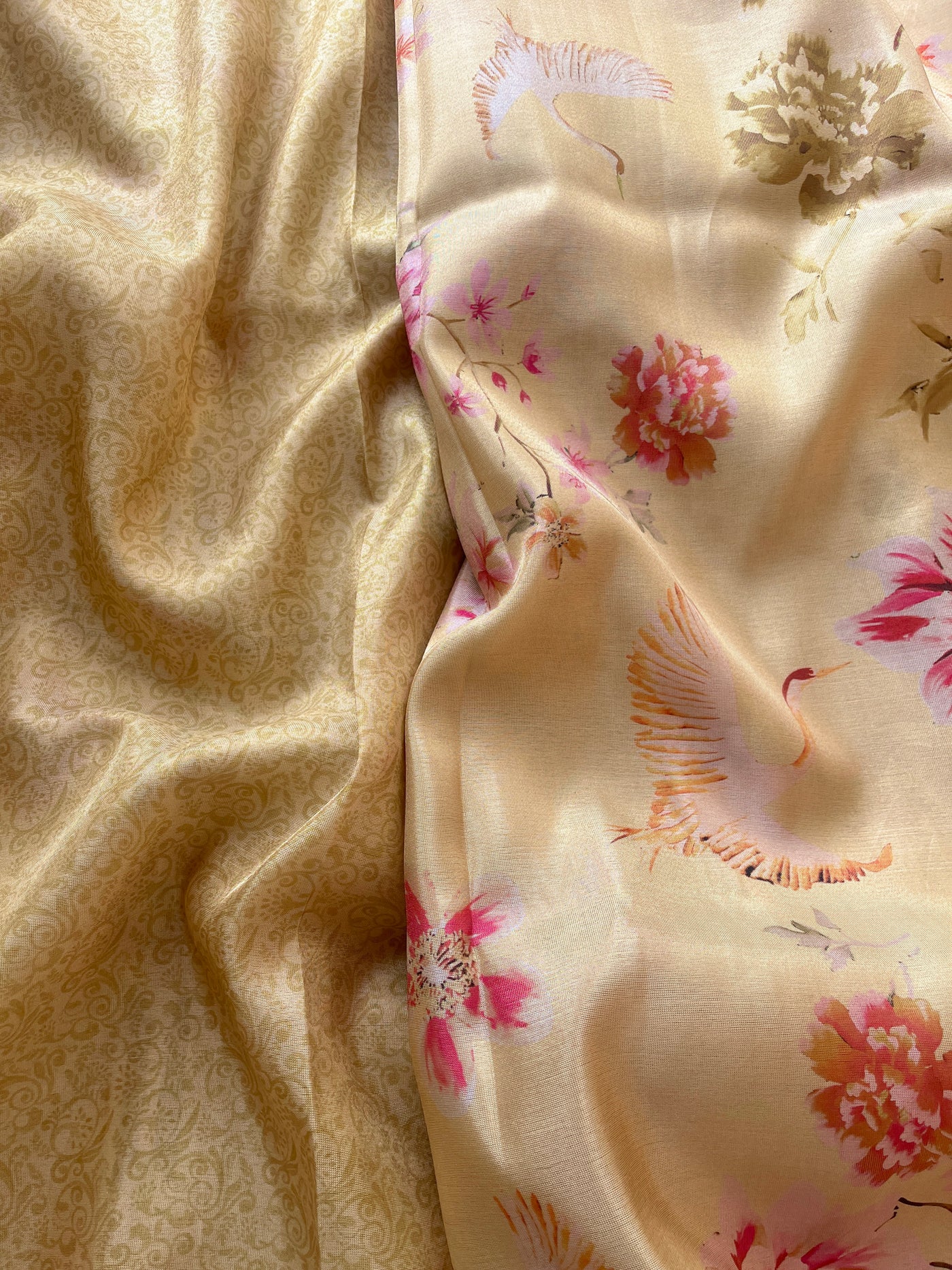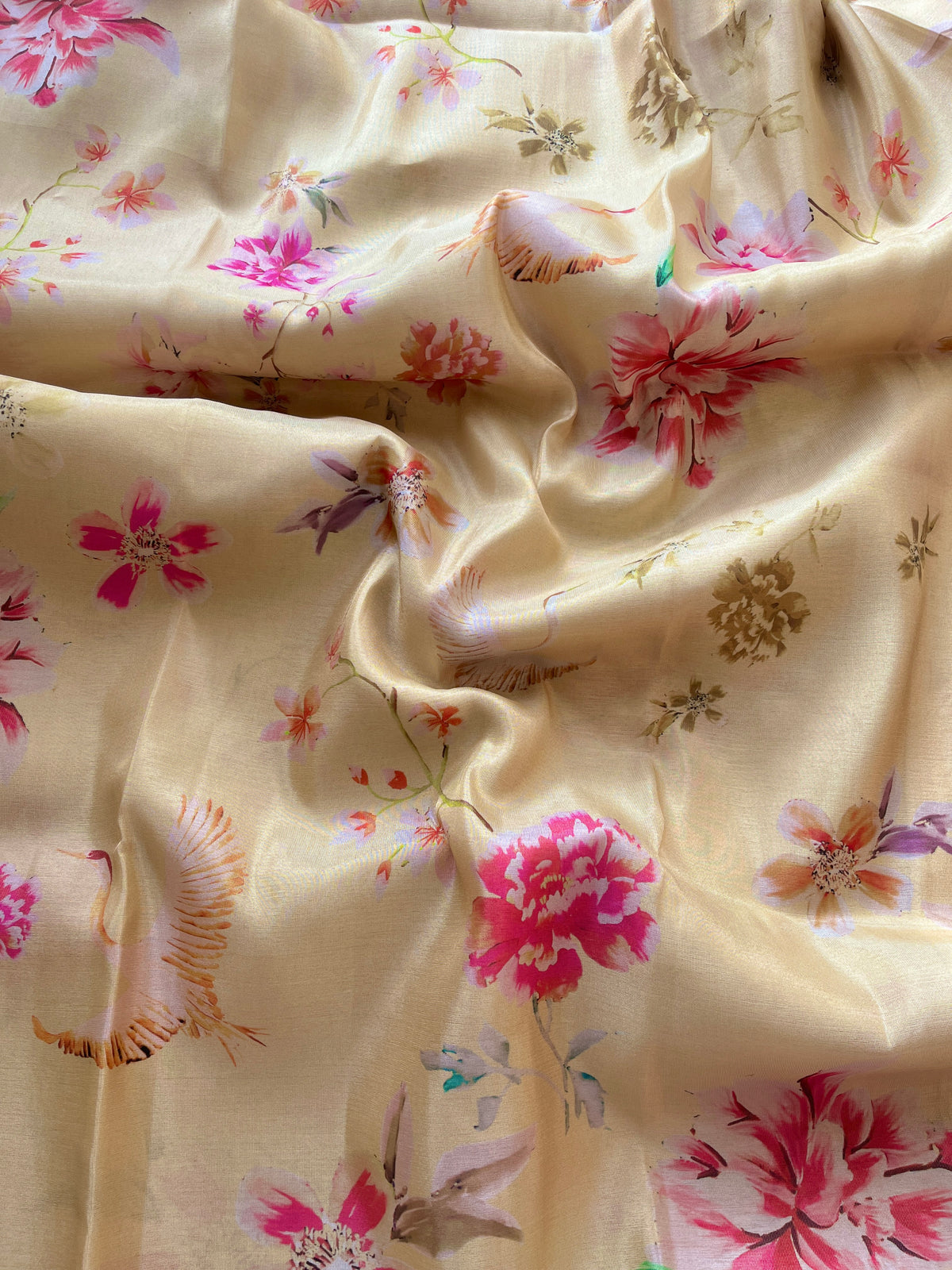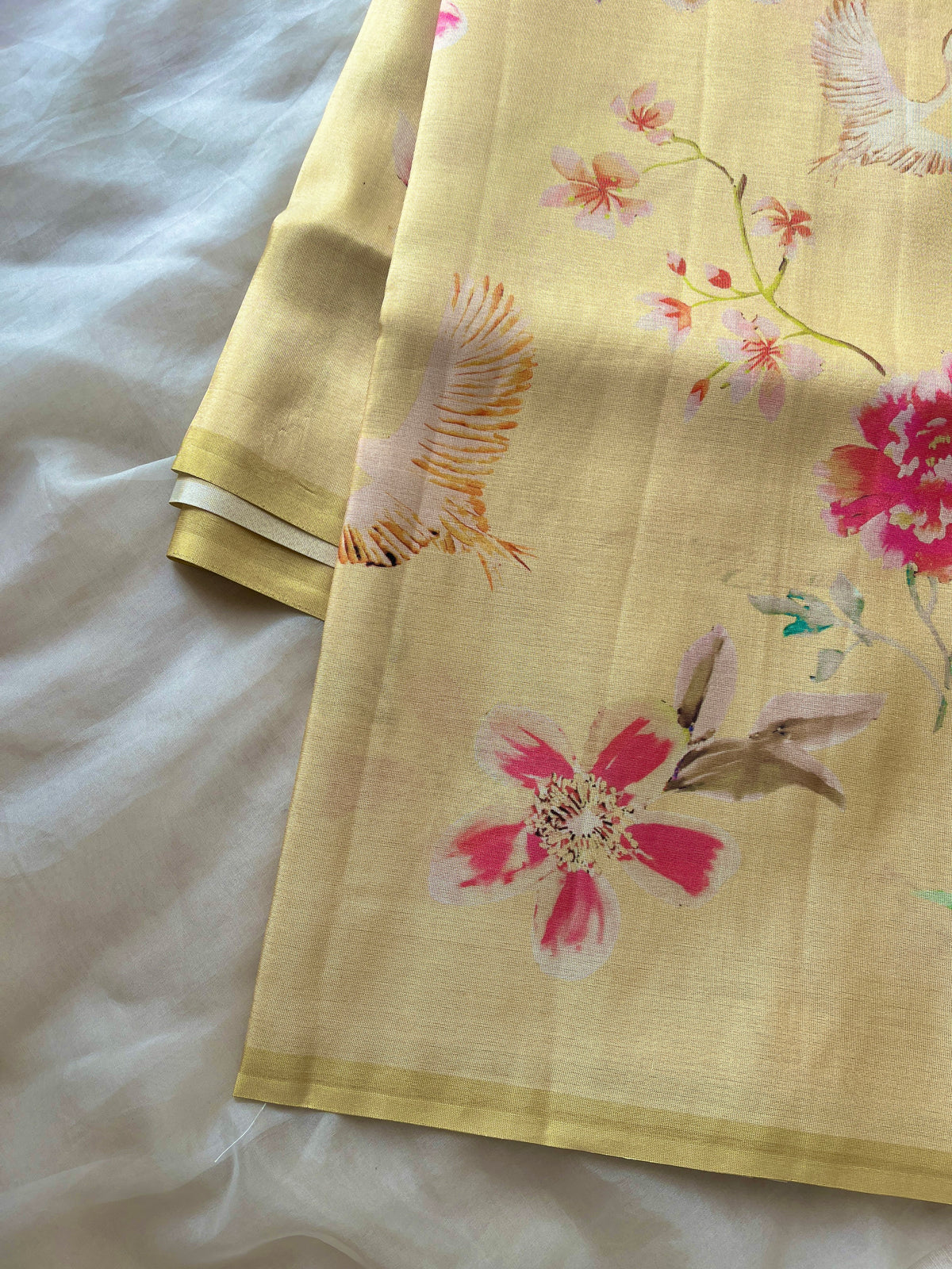 Yellow Tussar floral printed saree