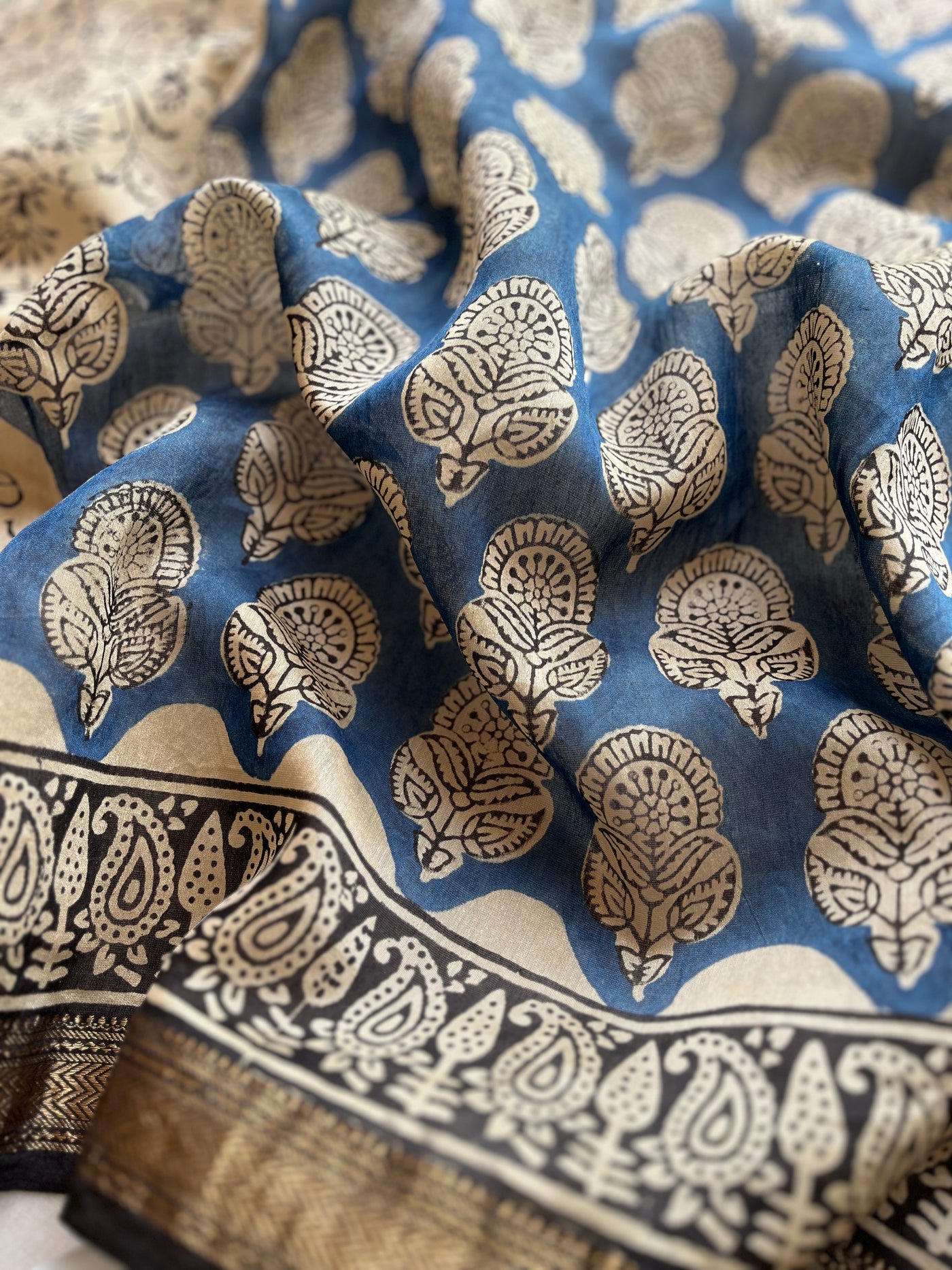 Discover the refined elegance of this Blue Maheshwari Silk saree, a masterpiece of Indian textile heritage. Crafted from premium silk blended with cotton, this saree delivers a luxurious drape with remarkable breathability—ideal for India's warm climate. The deep blue shade exudes sophistication, complementing various skin tones and occasions from celebrations to formal events. Maheshwari weaves are distinguished by their intricate patterns and superior quality, reflecting generations of expertise from Indore's skilled artisans. The fabric's natural luster and durability ensure this saree remains a cherished addition to your collection for years to come. Experience authentic craftsmanship with every wear.