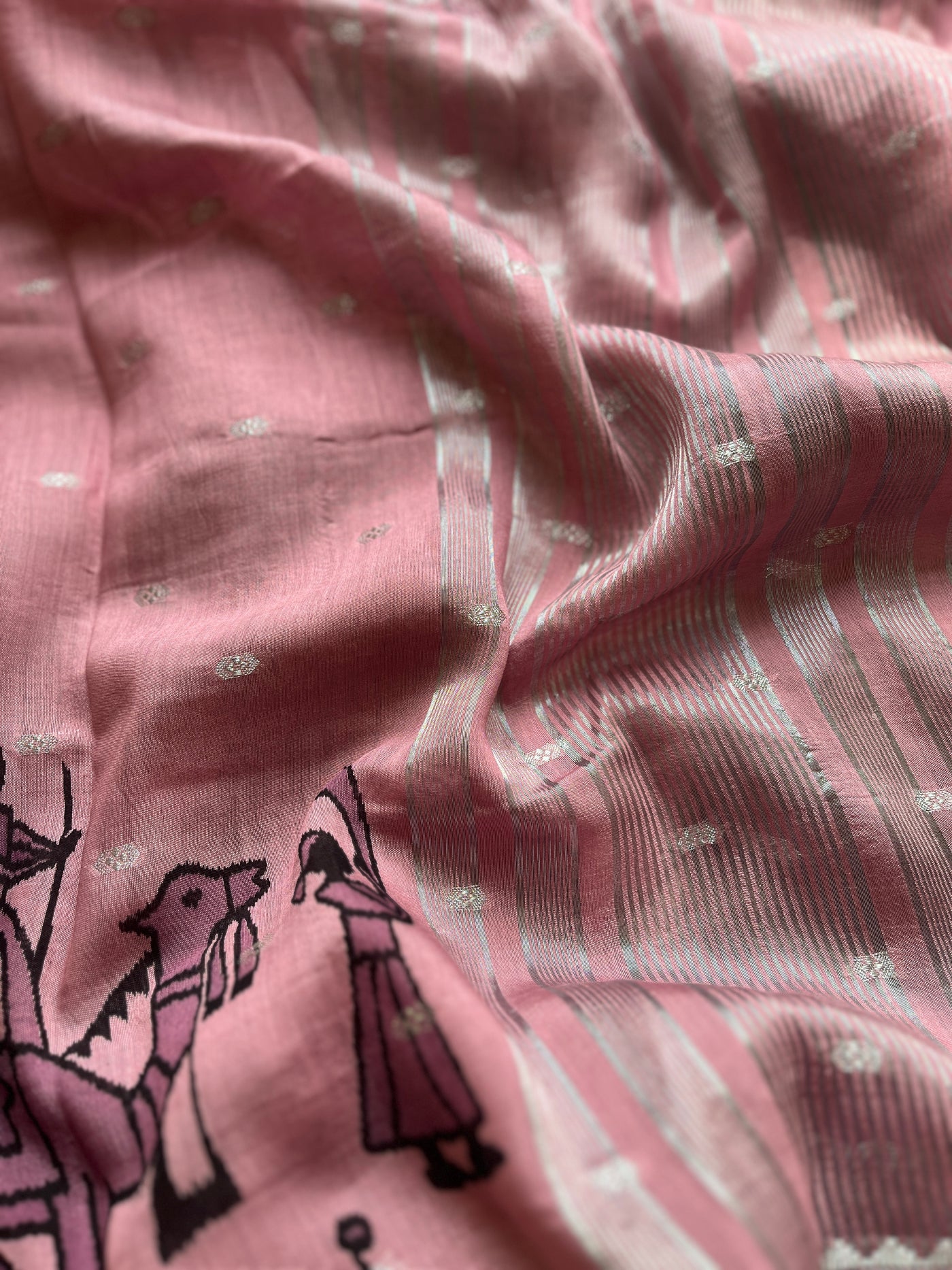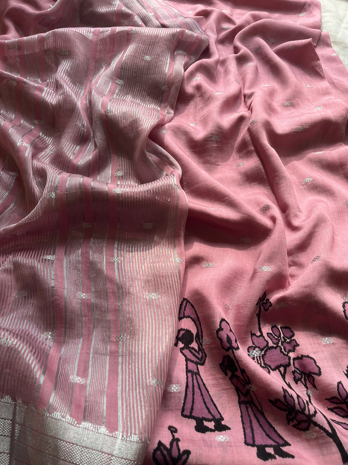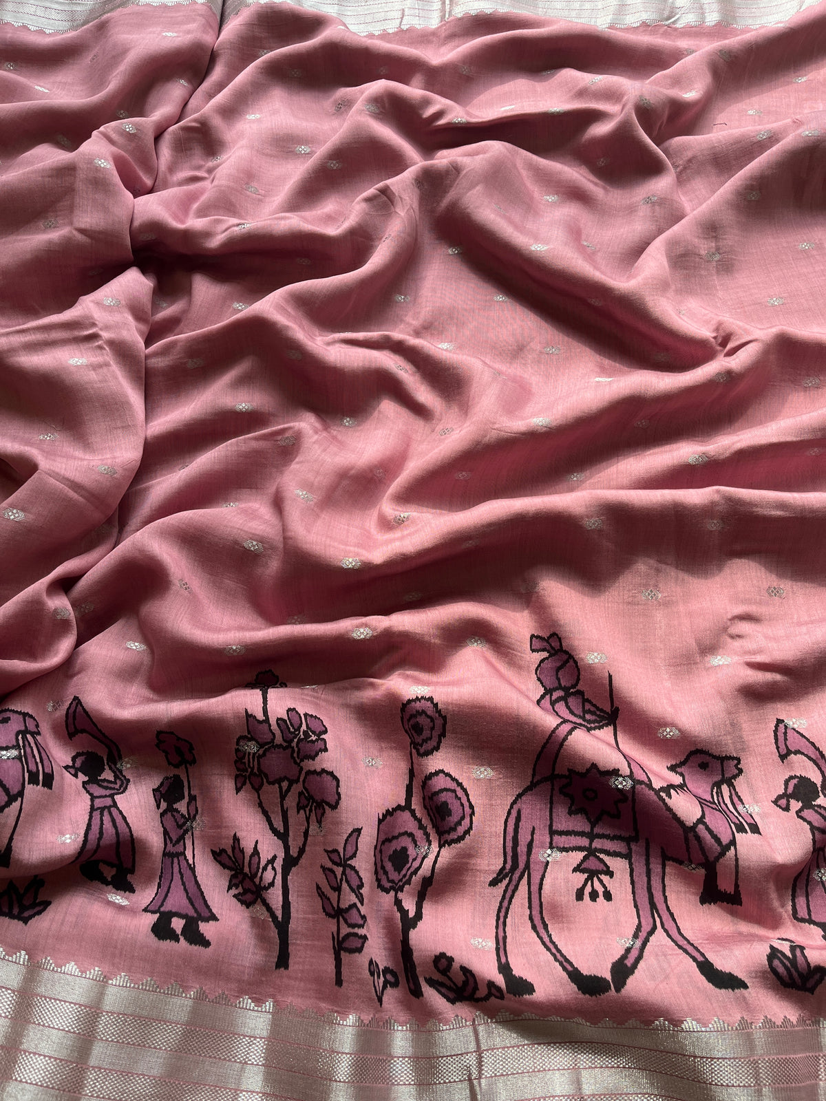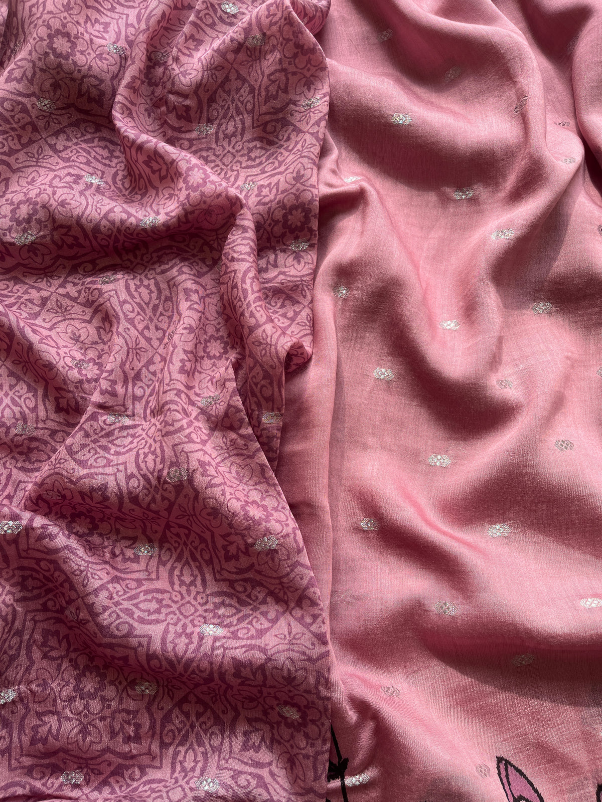 This Dusty Pink Dola Silk Saree combines delicate color with the rich texture of Dola Silk for a refined and graceful look. The fabric’s subtle sheen and soft drape enhance its elegance, making it perfect for formal events and special occasions. Its muted pink tone offers versatile styling options while maintaining a sophisticated appeal.