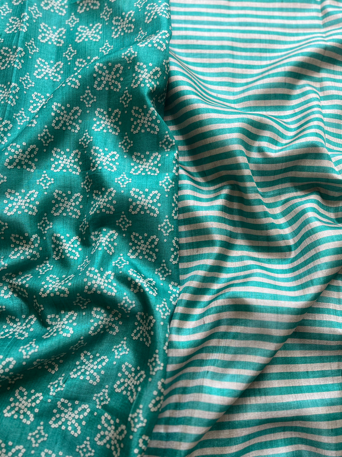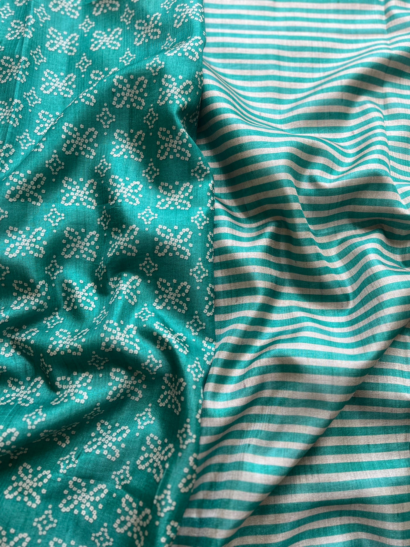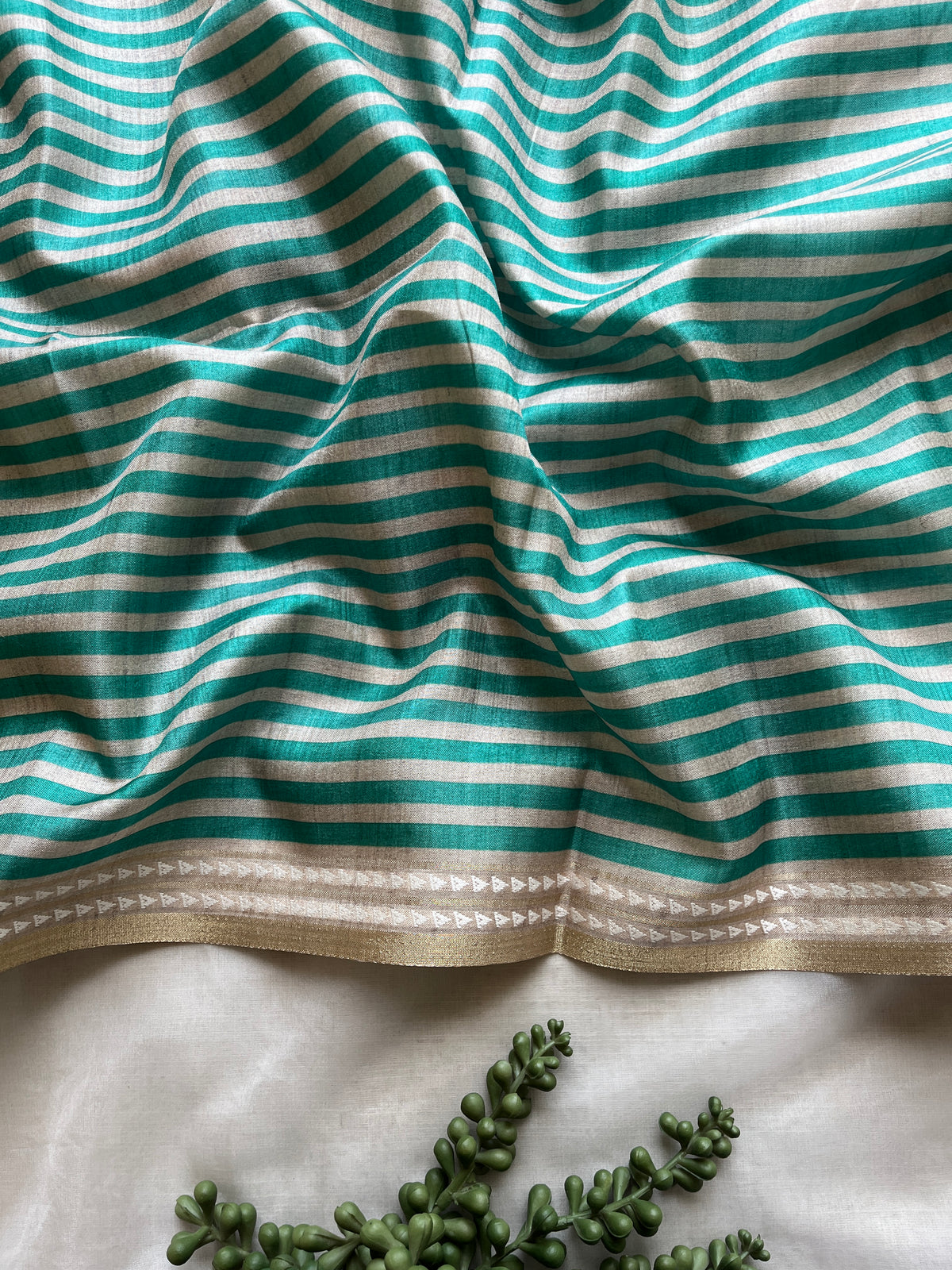 This green striped art tussar silk saree showcases the refined beauty of handwoven tussar fabric with sophisticated striped patterning. Tussar silk's naturally textured surface and subtle luminosity create an understated elegance suitable for both formal gatherings and refined casual occasions. The verdant green palette offers a refreshing alternative to traditional saree colors while maintaining timeless appeal. The fabric's inherent breathability and graceful drape make it an ideal choice for warm weather wear. A testament to artisanal craftsmanship, this saree bridges heritage weaving traditions with contemporary aesthetic sensibilities.