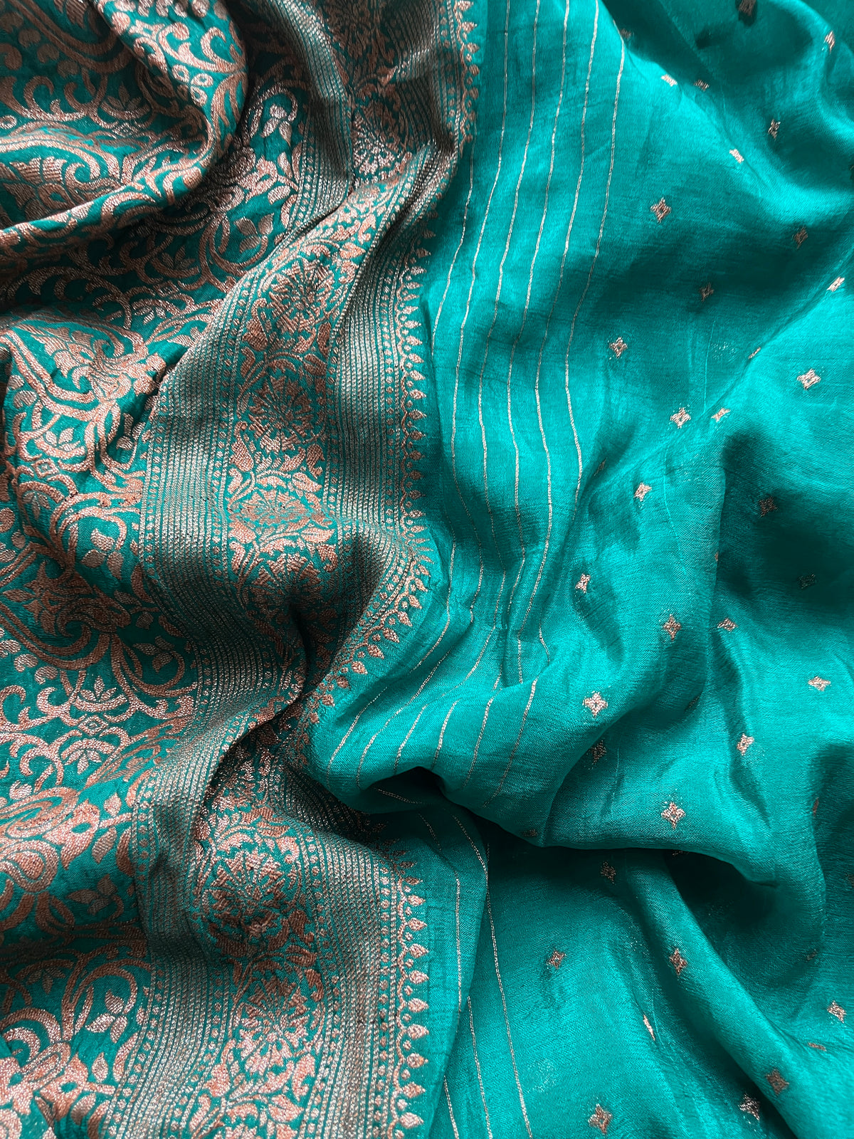 Elevate your ethnic wardrobe with this sophisticated green viscose georgette saree. Crafted from premium viscose georgette fabric, this saree offers a graceful drape and fluid movement that flatters every silhouette. The rich green hue brings timeless elegance to both traditional and contemporary styling. Viscose georgette's lightweight nature ensures comfort throughout the day, while its subtle sheen adds understated luxury. Perfect for festive occasions, celebrations, or refined everyday wear, this saree seamlessly transitions from day to evening. An investment piece that combines traditional craftsmanship with modern sensibility.