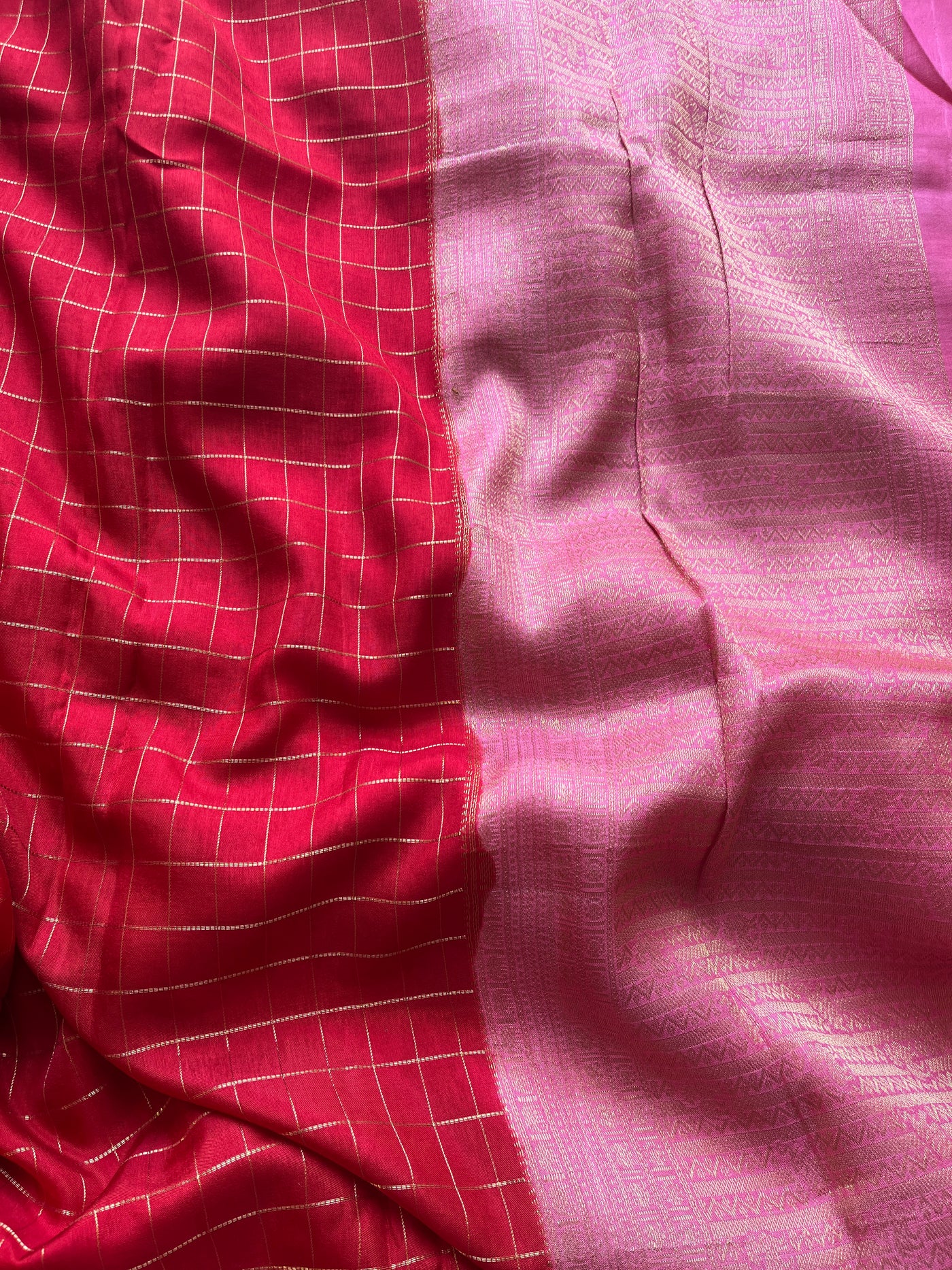 Elevate your ethnic wardrobe with this stunning Muthu kattam red viscose silk saree. Crafted from luxurious viscose silk, this traditional piece features the intricate Muthu kattam (pearl embroidery) detailing that adds timeless elegance to any occasion. The rich red hue exudes sophistication and confidence, making it perfect for festivals, celebrations, and formal gatherings. The fluid drape of viscose silk ensures comfort throughout the day while maintaining a graceful silhouette. A versatile choice for those who appreciate authentic craftsmanship and refined style.