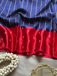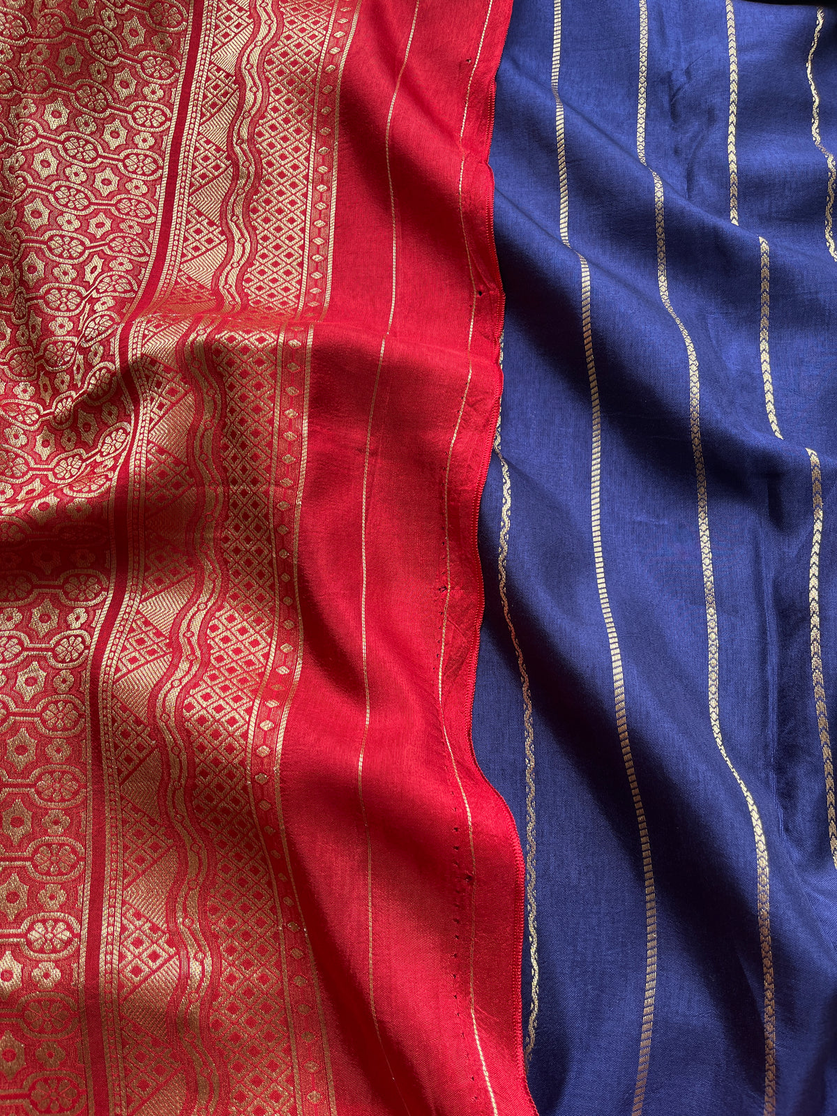 Elevate your wardrobe with this Navy Blue Viscose Satin Saree, elegantly accented by a striking red border. Crafted from smooth, lightweight fabric, it drapes effortlessly to provide both comfort and sophistication. Ideal for formal occasions, this saree combines timeless style with modern allure, making it a refined choice for any discerning wearer.