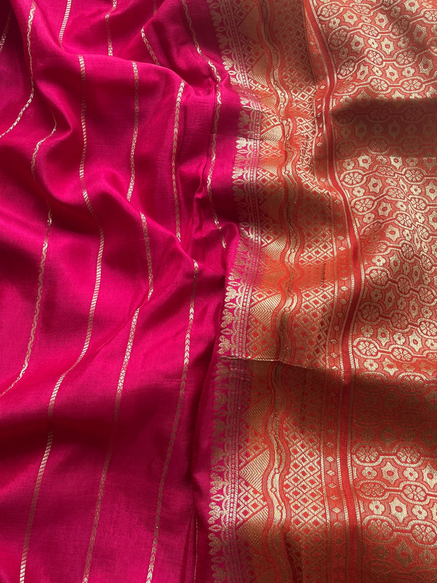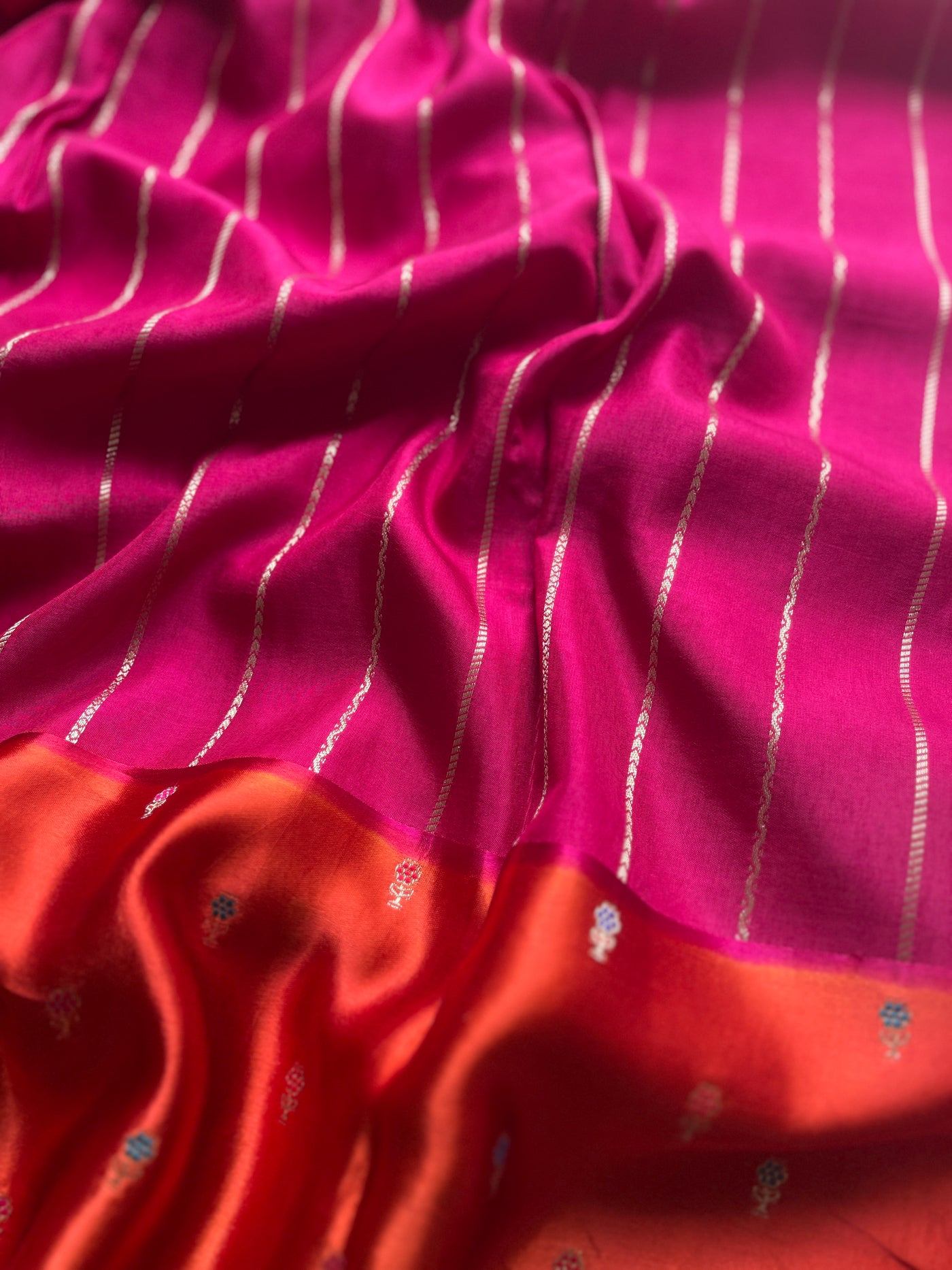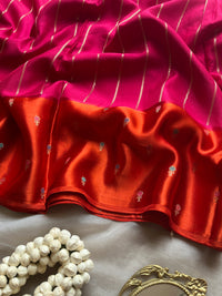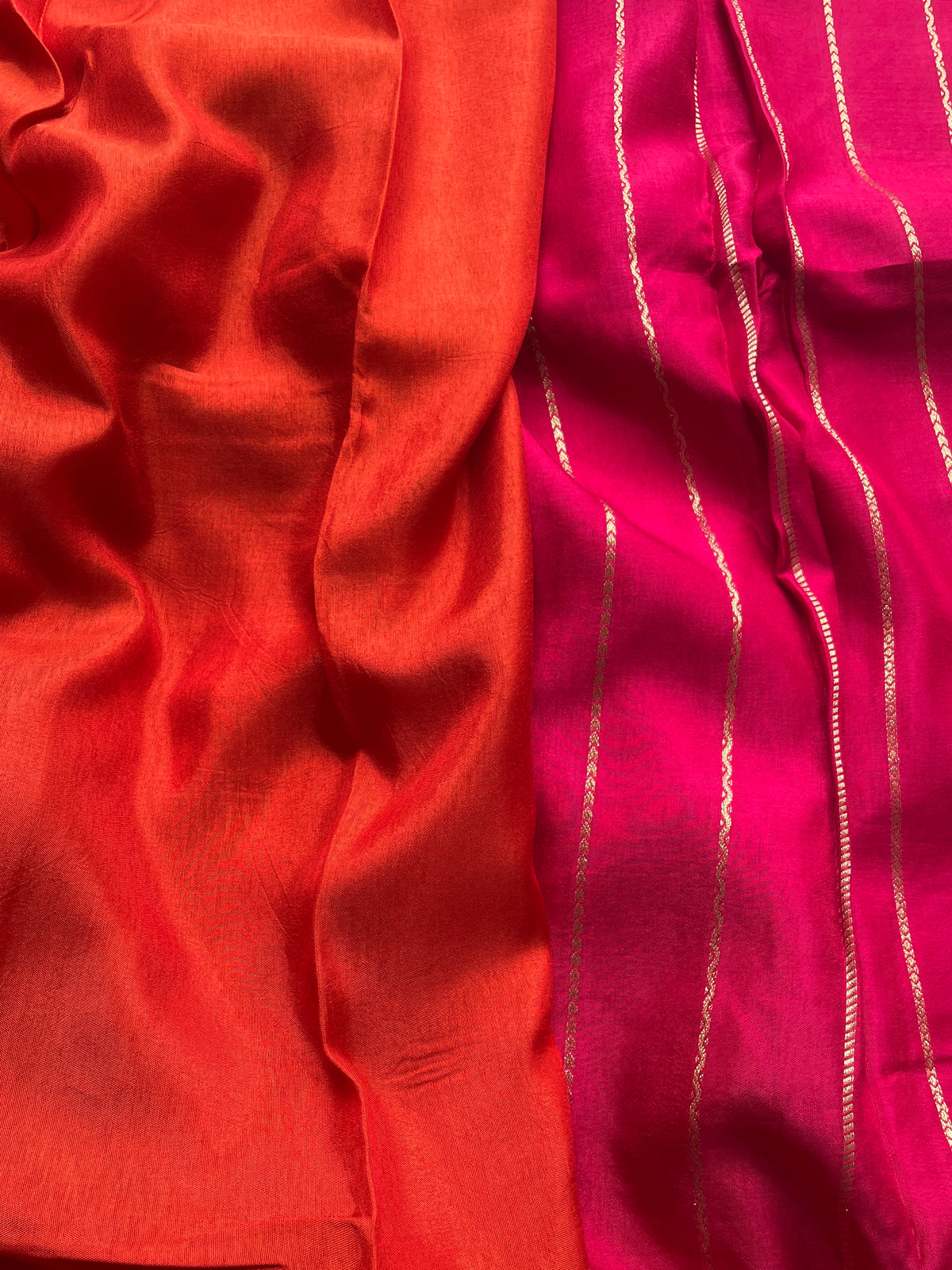 This Rani Pink Viscose Satin Saree is elegantly complemented by a vibrant orange border, creating a striking yet harmonious palette. Crafted from smooth viscose satin, it offers a lightweight and graceful drape, ideal for celebratory events and formal occasions. The bold border enhances the saree’s visual appeal, making it a sophisticated choice for those seeking vibrant elegance.