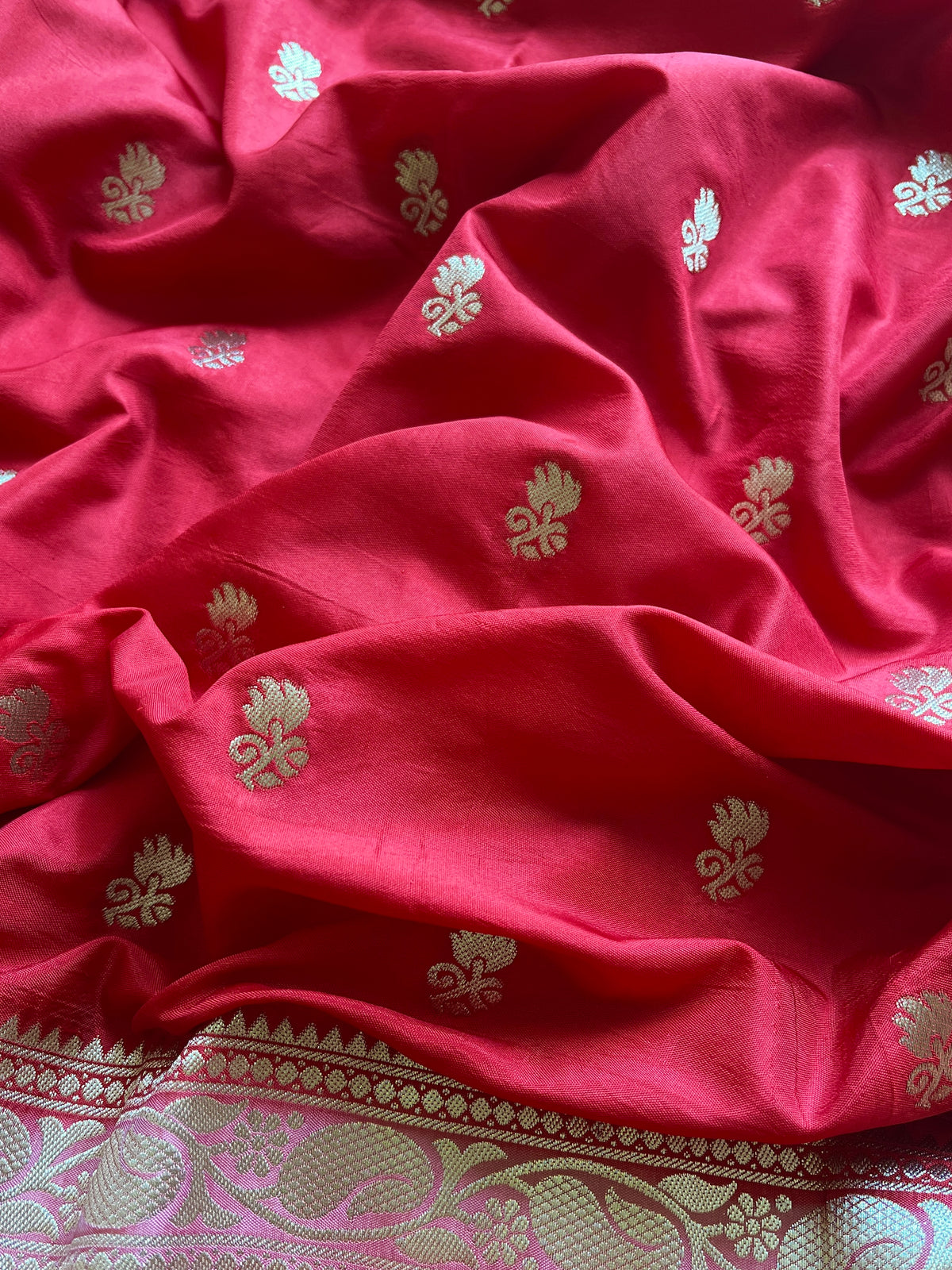 Embrace timeless elegance with this Red Banarasi semi-silk saree, a quintessential piece that honours India's rich textile heritage. Crafted from premium semi-silk, the fabric provides a sumptuous drape with a refined sheen that beautifully complements the classic red hue. This versatile colour remains a cherished choice for weddings, festivals, and significant life events. The saree showcases meticulous Banarasi weaving, featuring intricate patterns that reflect generations of artisanal expertise. Built to last, this piece combines authentic craftsmanship with enduring quality, making it an investment in both style and substance for those who value genuine heritage textiles and sophisticated design.