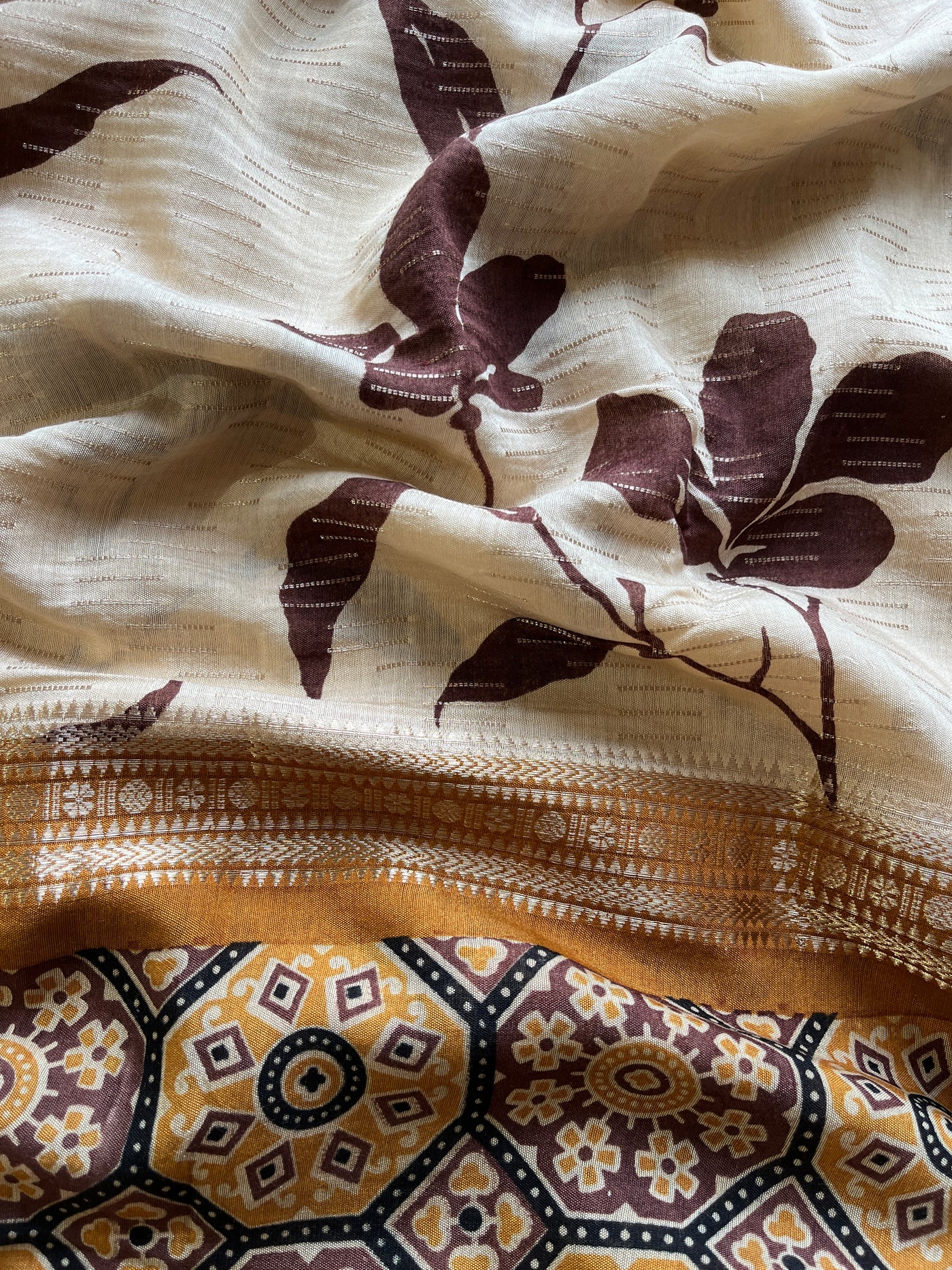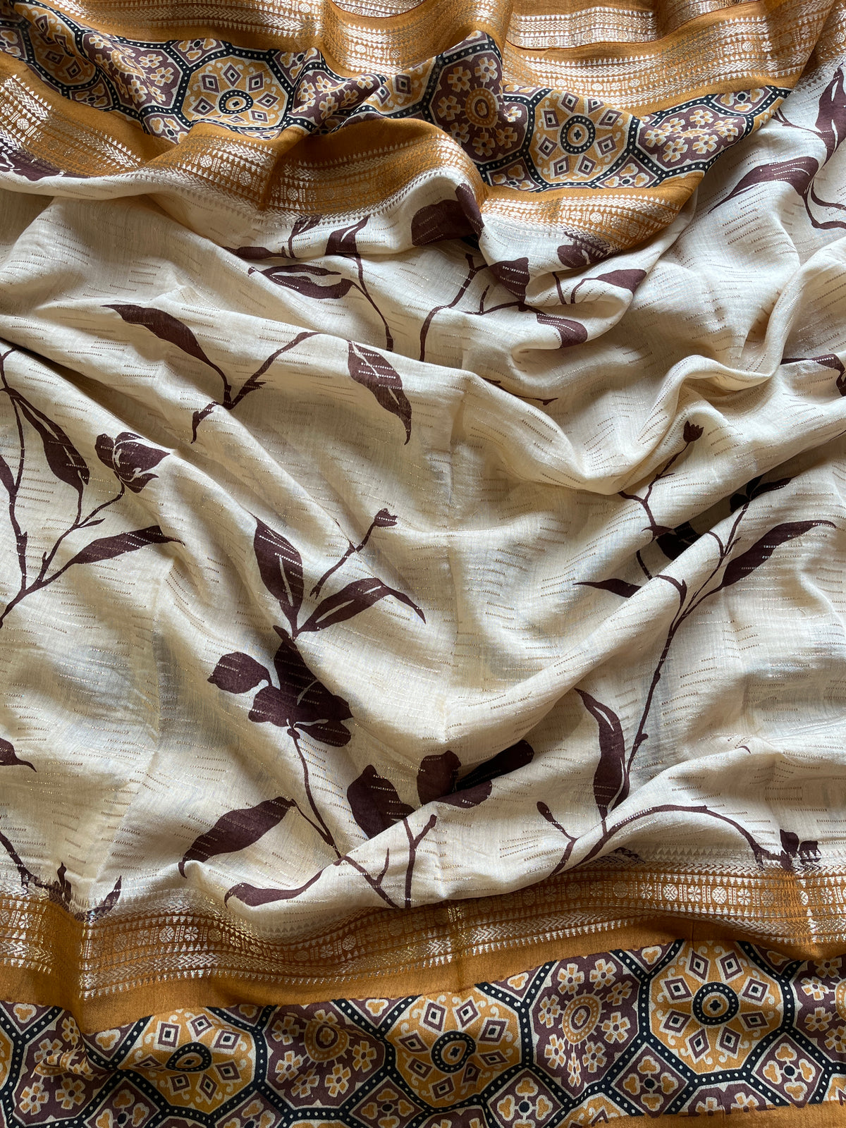 Elevate your ethnic wardrobe with this striking Yellow & Brown Floral saree, a masterpiece that seamlessly blends traditional craftsmanship with contemporary design sensibilities. The vibrant yellow base provides a luminous canvas, while intricate brown floral motifs create depth and visual interest throughout the drape. Perfect for festive occasions, celebrations, or making a sophisticated statement at cultural events, this saree showcases meticulous attention to detail in its weaving. The harmonious color palette flatters a range of skin tones and pairs effortlessly with complementary blouses and accessories. An investment piece that transcends seasonal trends, this saree embodies timeless elegance with modern appeal.