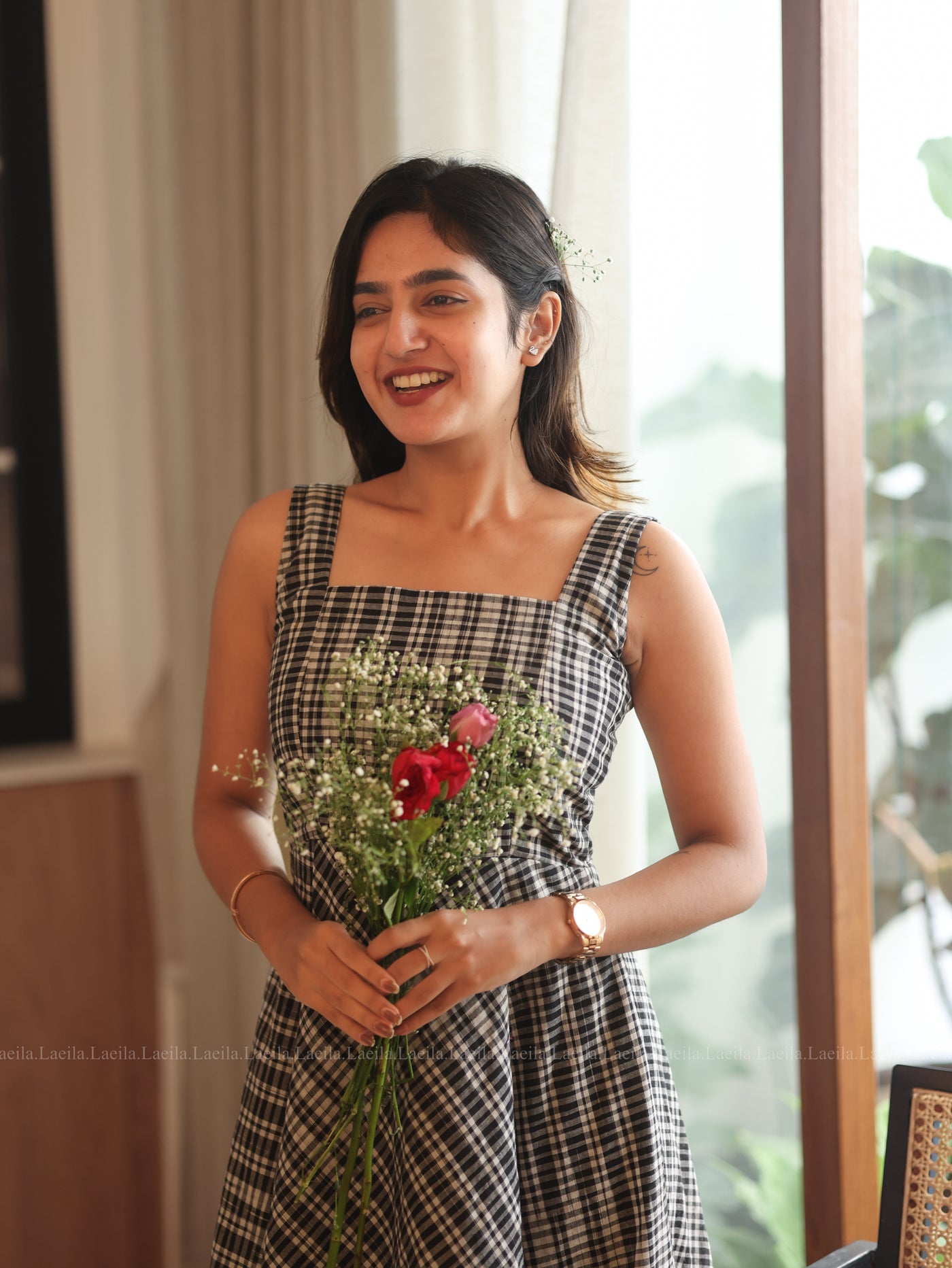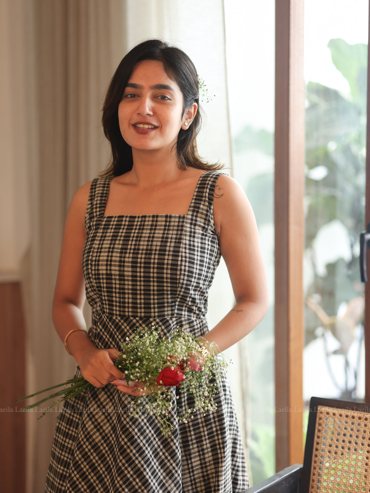 Elevate your wardrobe with this sophisticated black checkered dress, a timeless piece that seamlessly transitions from office to evening. The classic checkered pattern adds visual interest while maintaining an understated elegance, making it versatile enough for professional settings or casual outings. Crafted with attention to detail, this dress offers a flattering silhouette that works for various body types. Perfect for layering with blazers or jackets, it pairs effortlessly with heels, flats, or boots depending on the occasion. An essential investment piece that delivers both style and practicality.