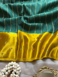 This Bottle Green Viscose Satin Saree, highlighted with a mustard border, offers a rich color combination that exudes understated elegance. The viscose satin fabric provides a smooth, lustrous finish and effortless draping, making it suitable for both formal events and festive occasions. The mustard border adds a subtle contrast, enhancing the saree’s refined charm and versatility.