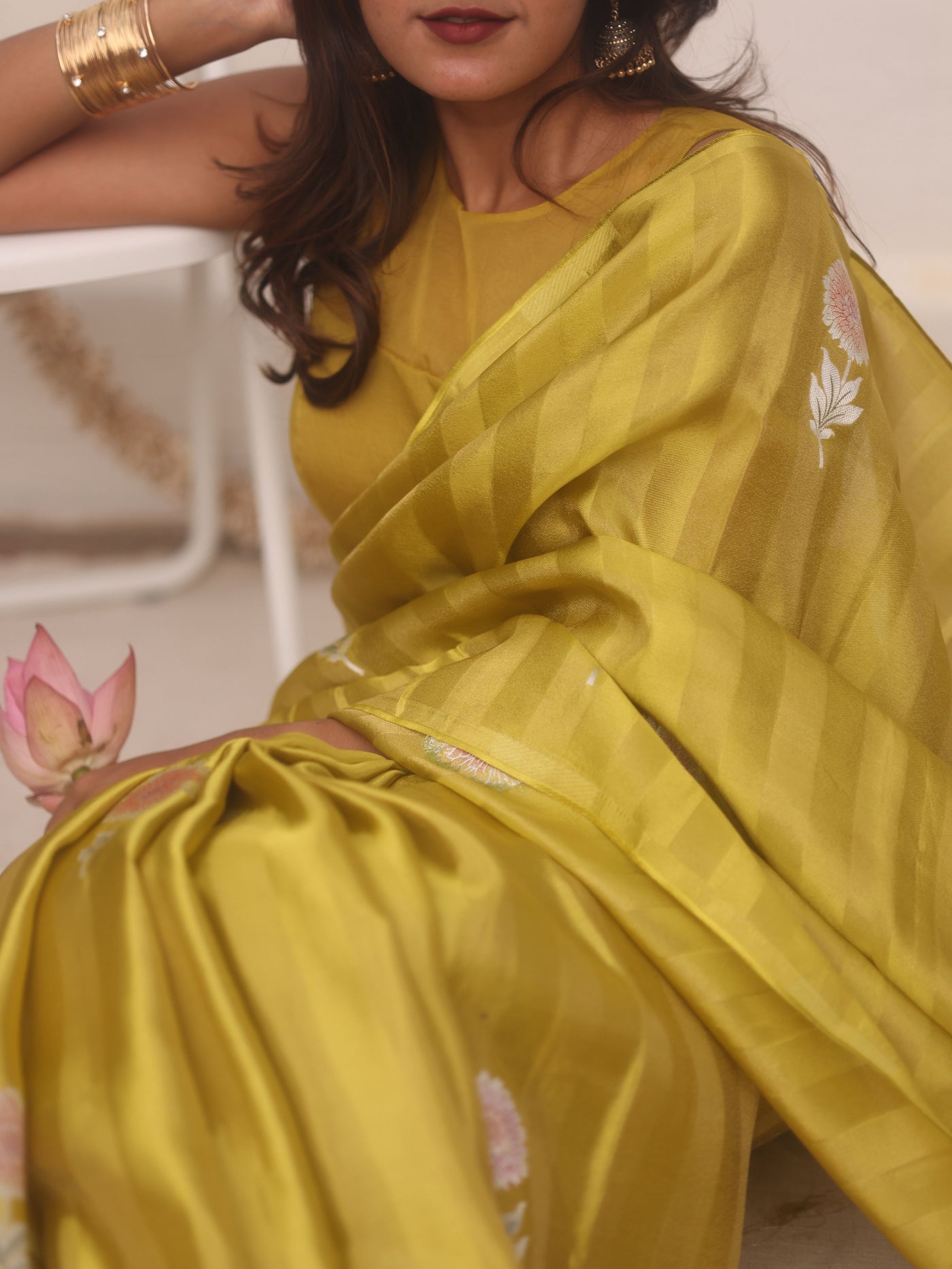 Elevate your wardrobe with this Lime Green Viscose Tissue Saree, expertly crafted to combine elegance and comfort. The lightweight viscose tissue fabric offers a smooth drape and a subtle sheen, perfect for formal occasions or festive celebrations. Its vibrant lime green hue adds a refreshing pop of color, while the breathable material ensures ease of wear throughout the day. This saree seamlessly blends traditional style with contemporary appeal, making it a versatile addition to your collection.