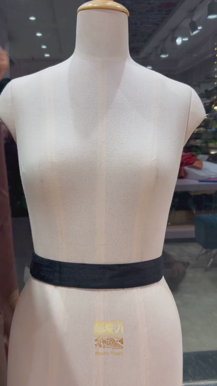 Crafted with 100% pure raw silk, this saree exudes elegance and luxury. Its soft, lightweight fabric drapes beautifully, making it perfect for any occasion. With its natural shine and intricate designs, this saree is a must-have for any saree connoisseur. Elevate your style with this exquisite Pure Raw silk saree.